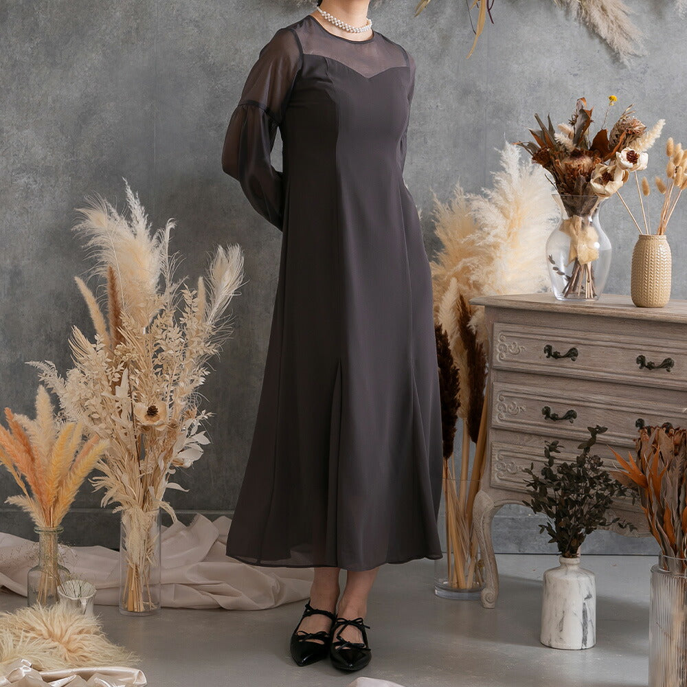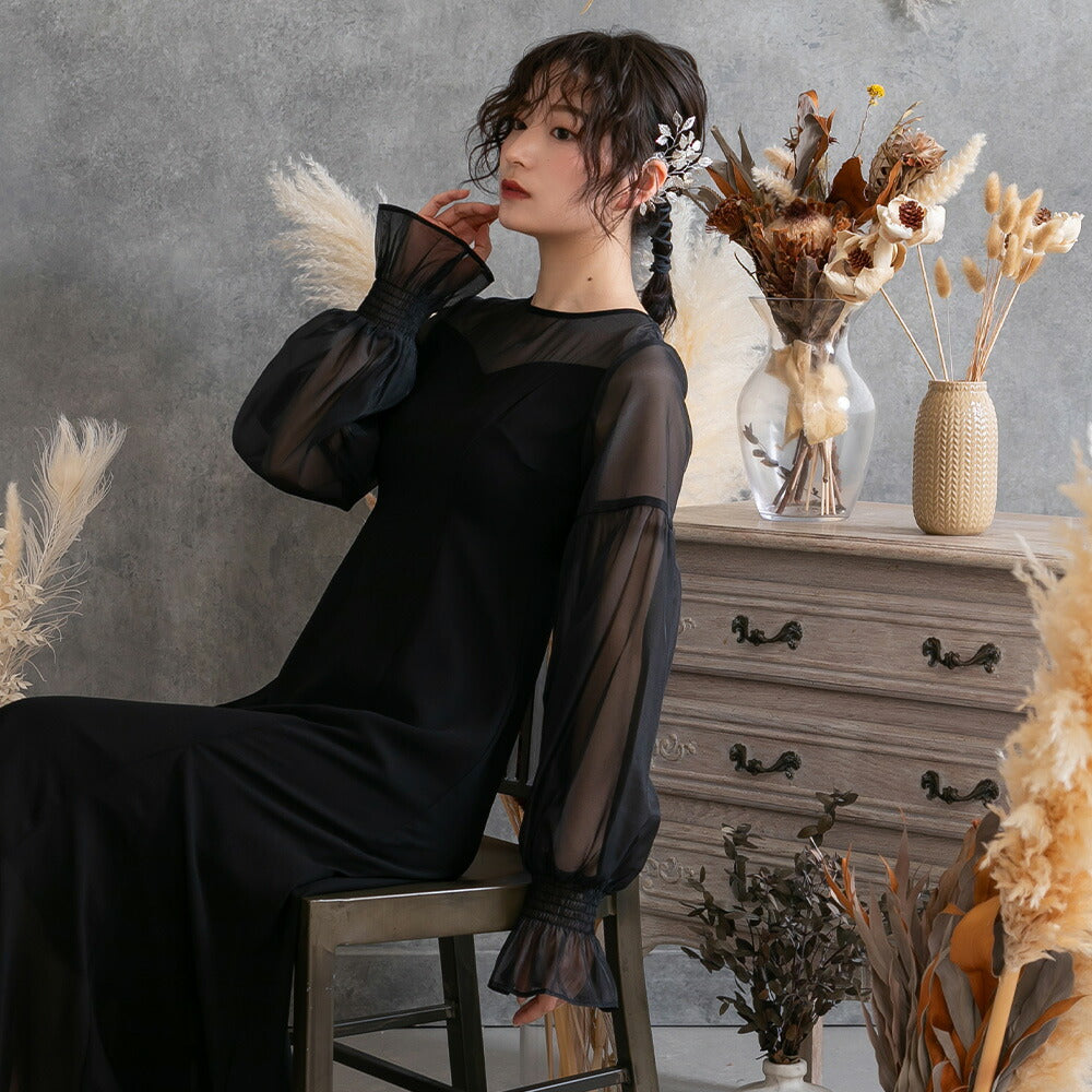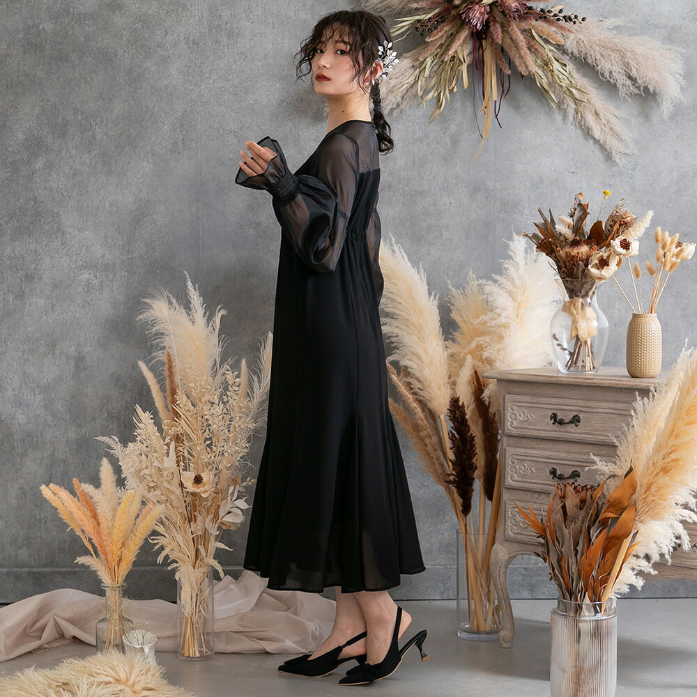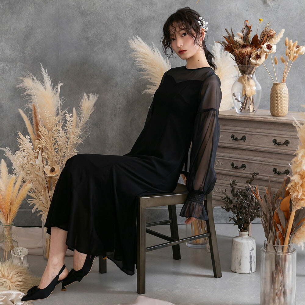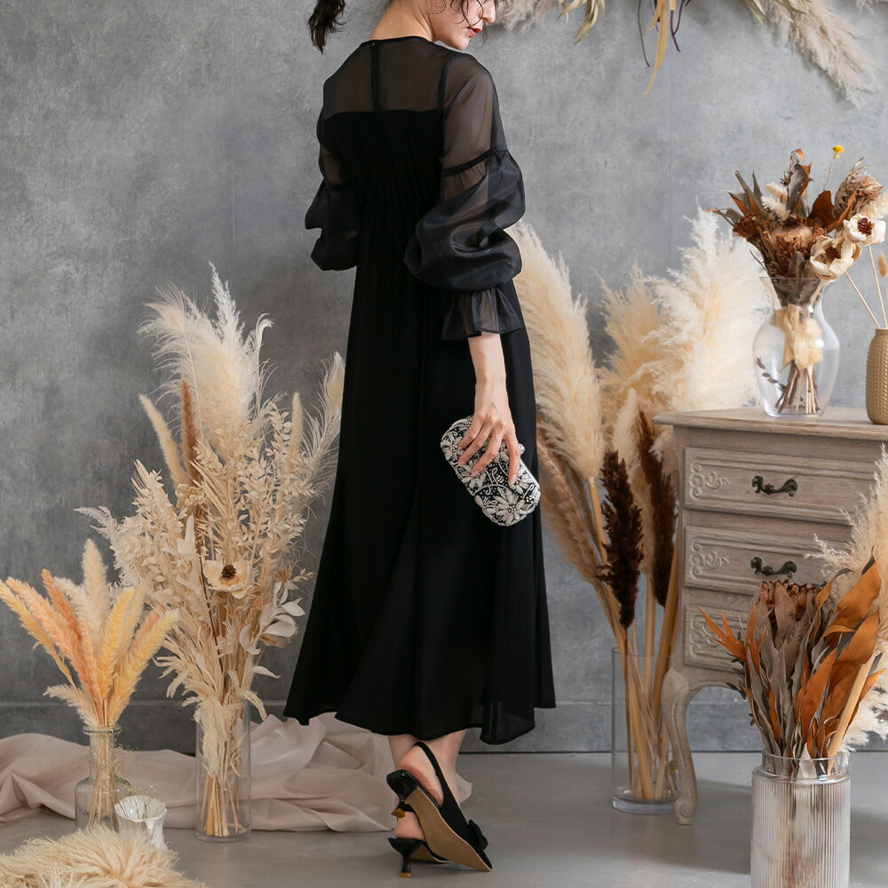 【お問い合わせ】 300144 スリーブコンシャスシフォンドレス