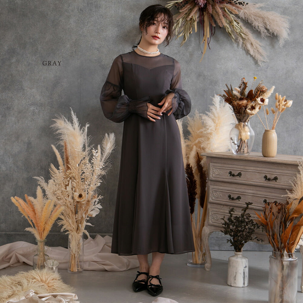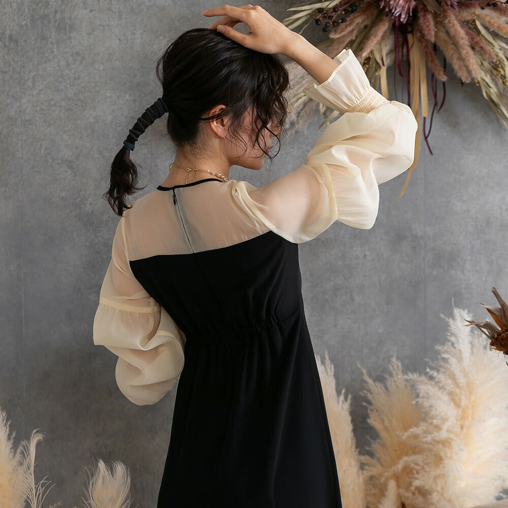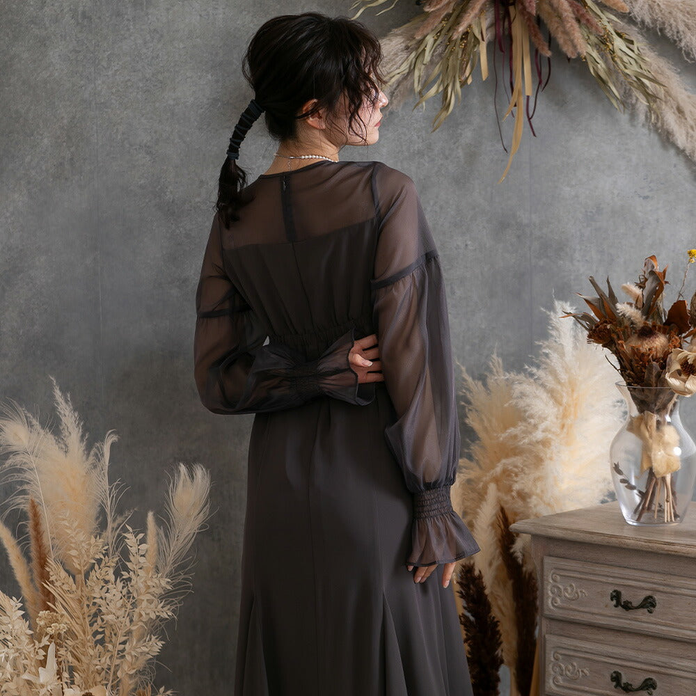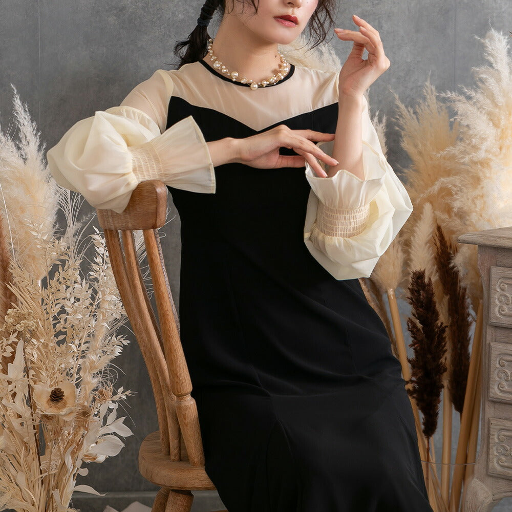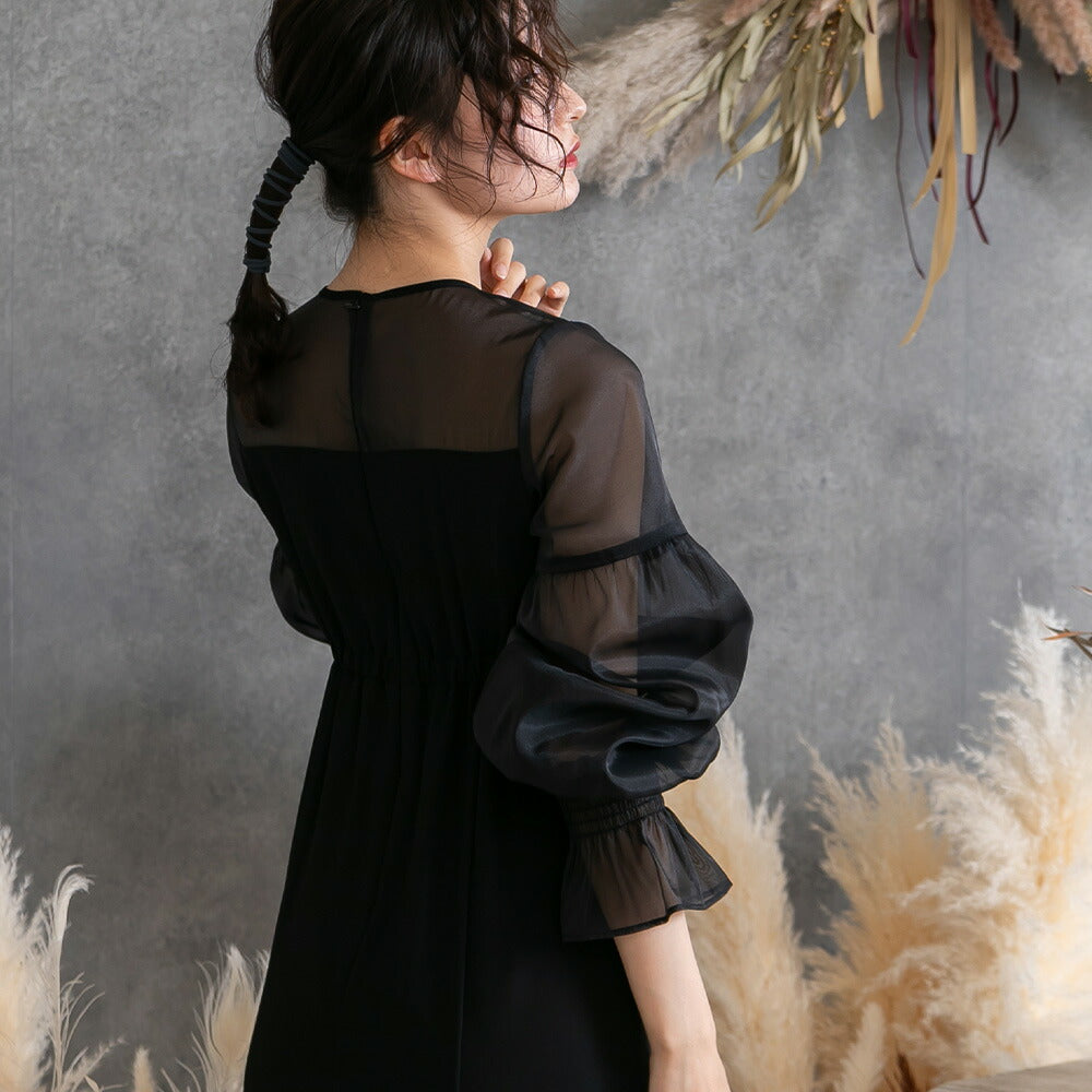 【お問い合わせ】 300144 スリーブコンシャスシフォンドレス