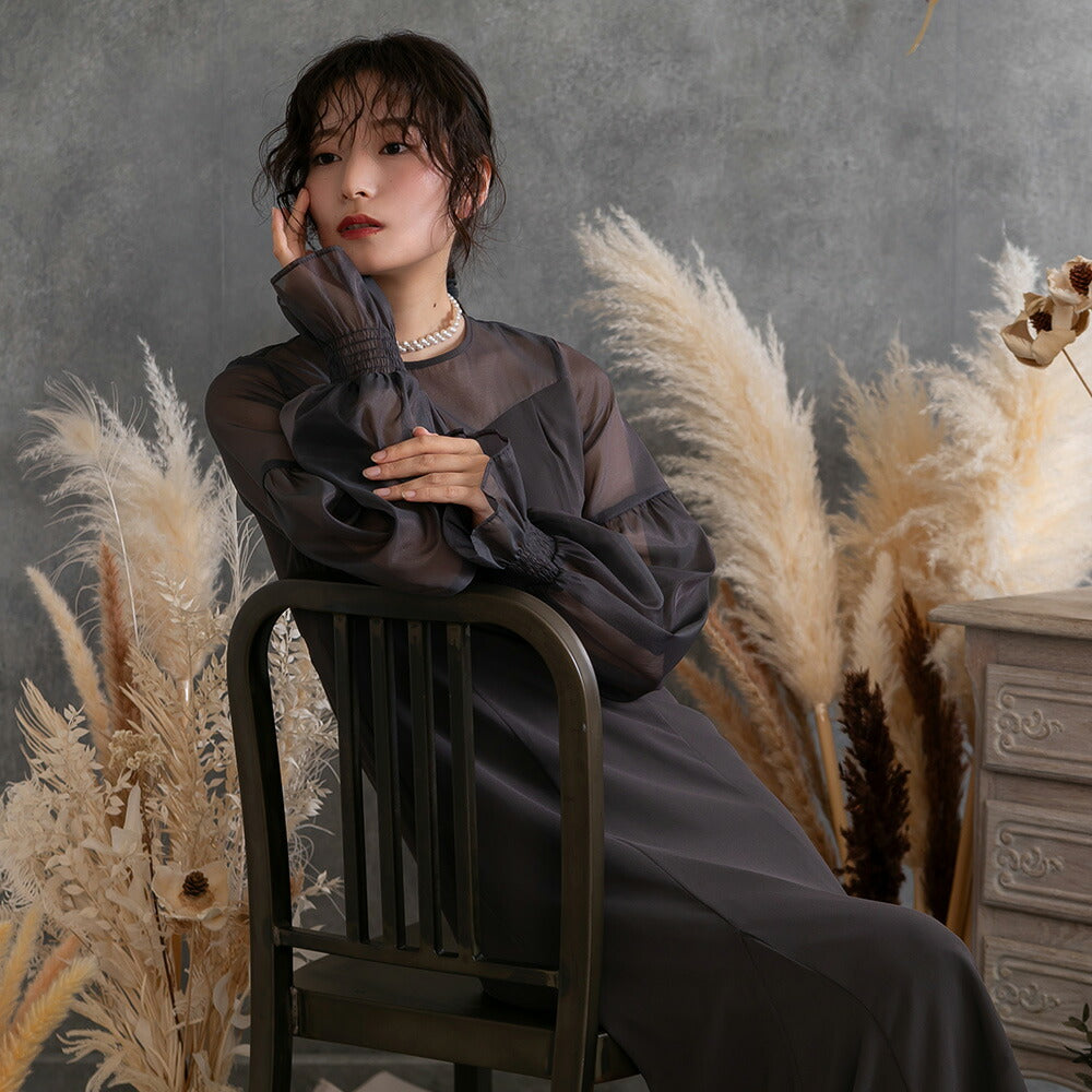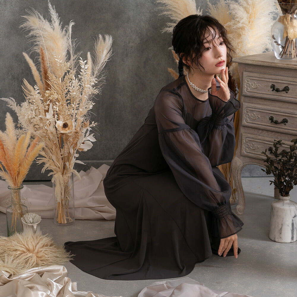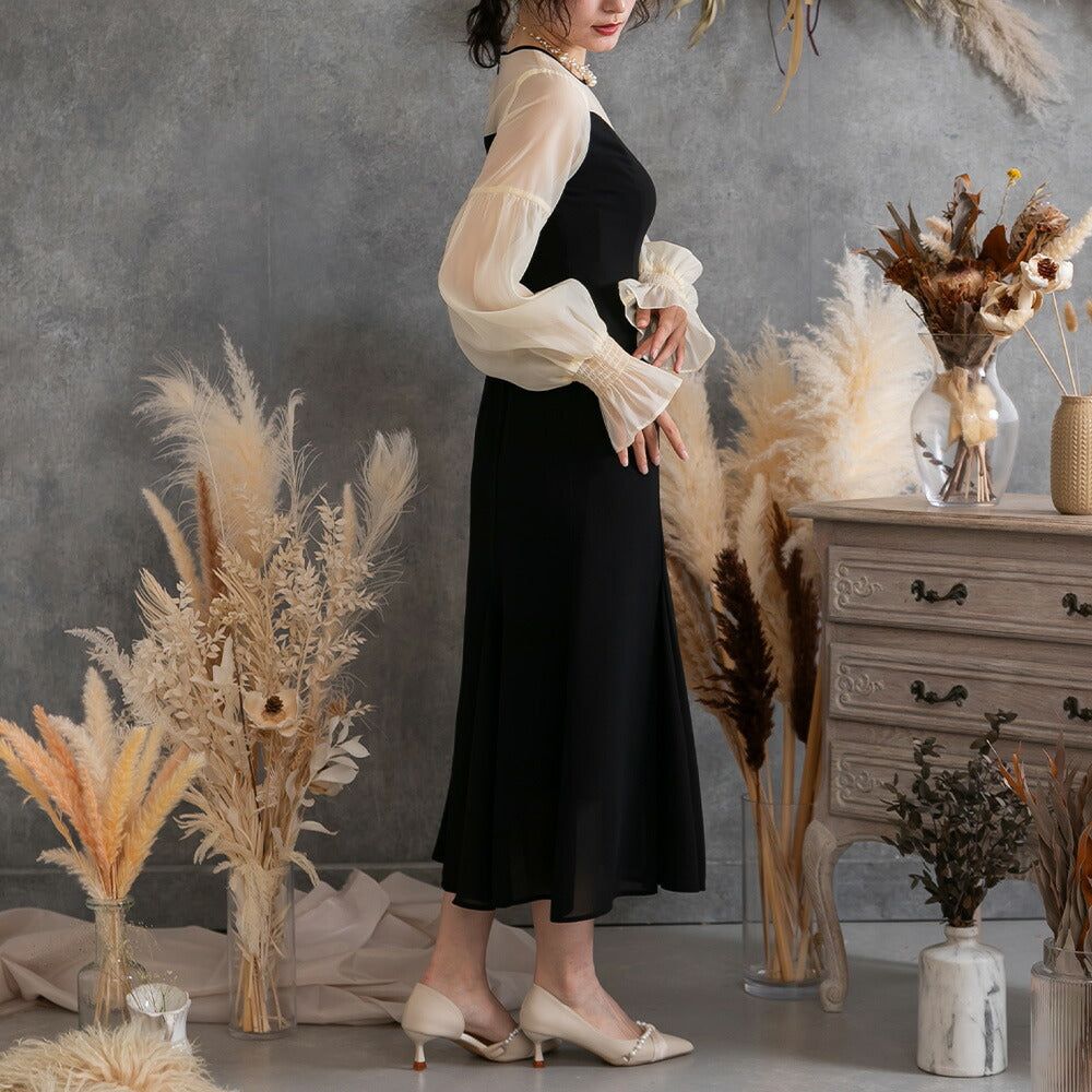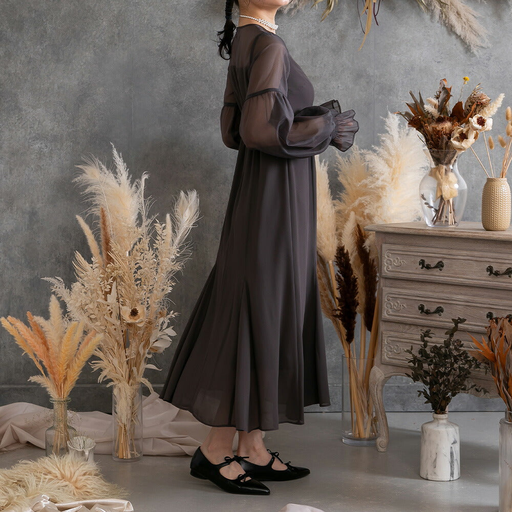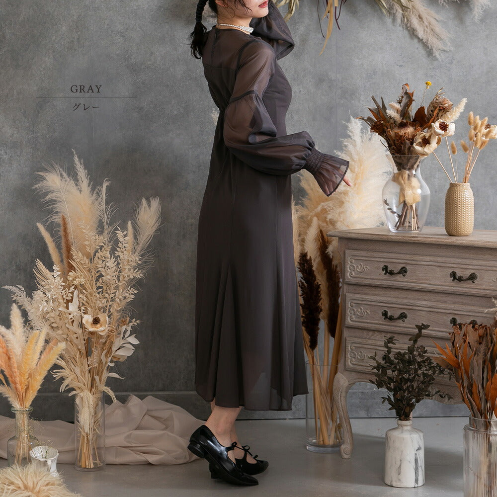 【お問い合わせ】 300144 スリーブコンシャスシフォンドレス
