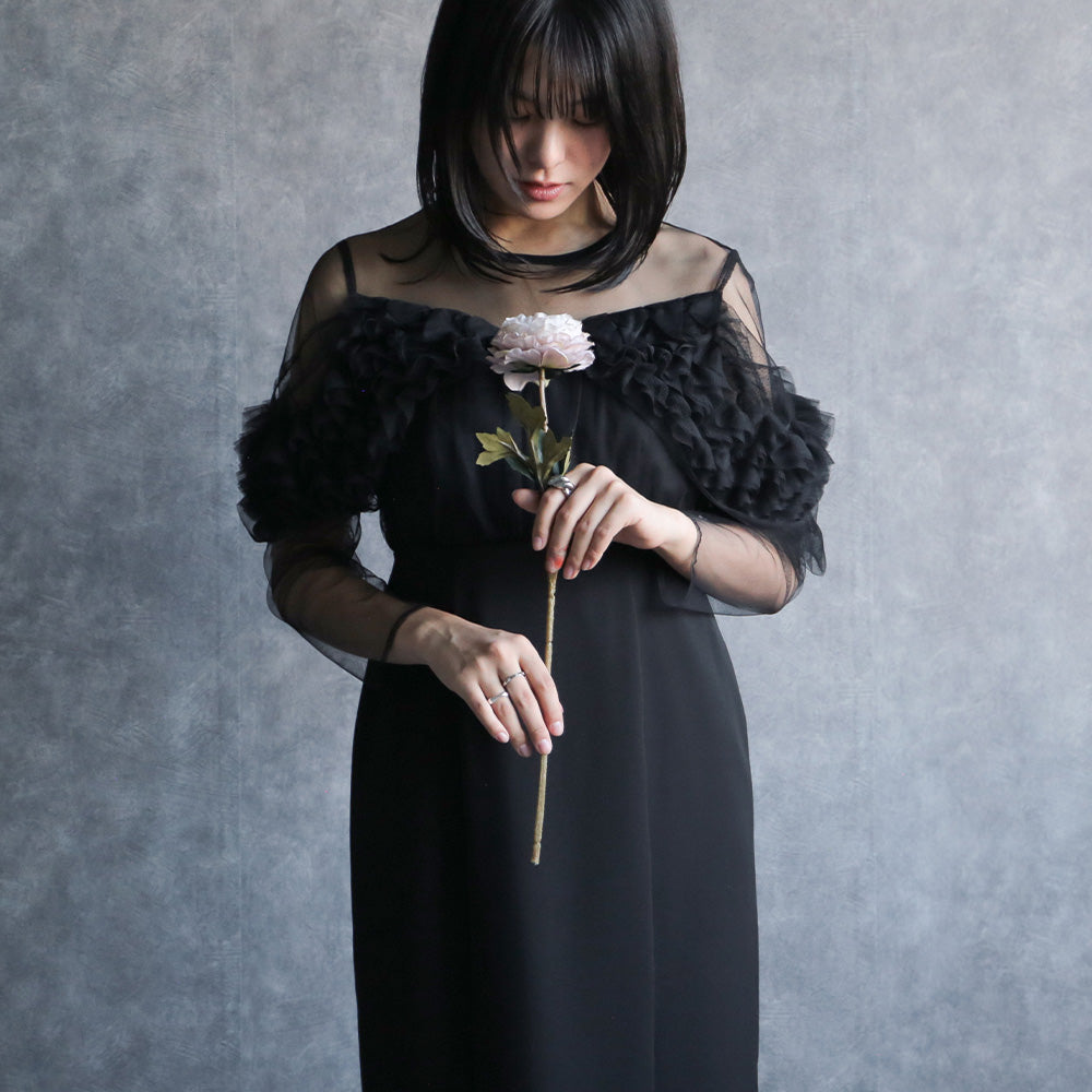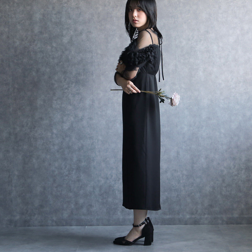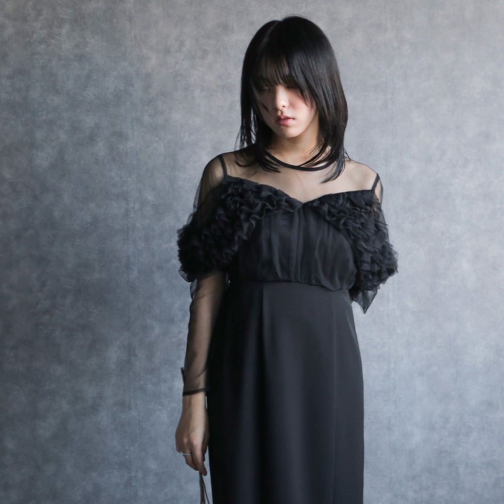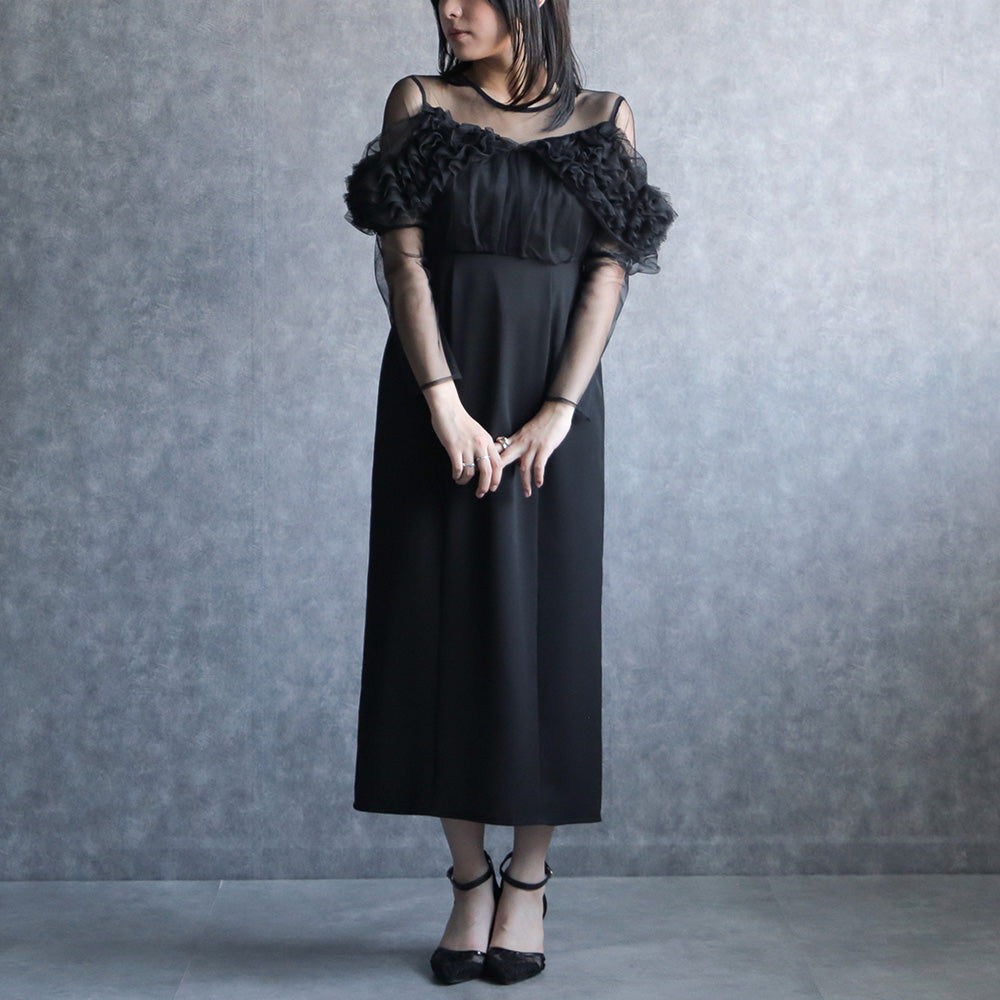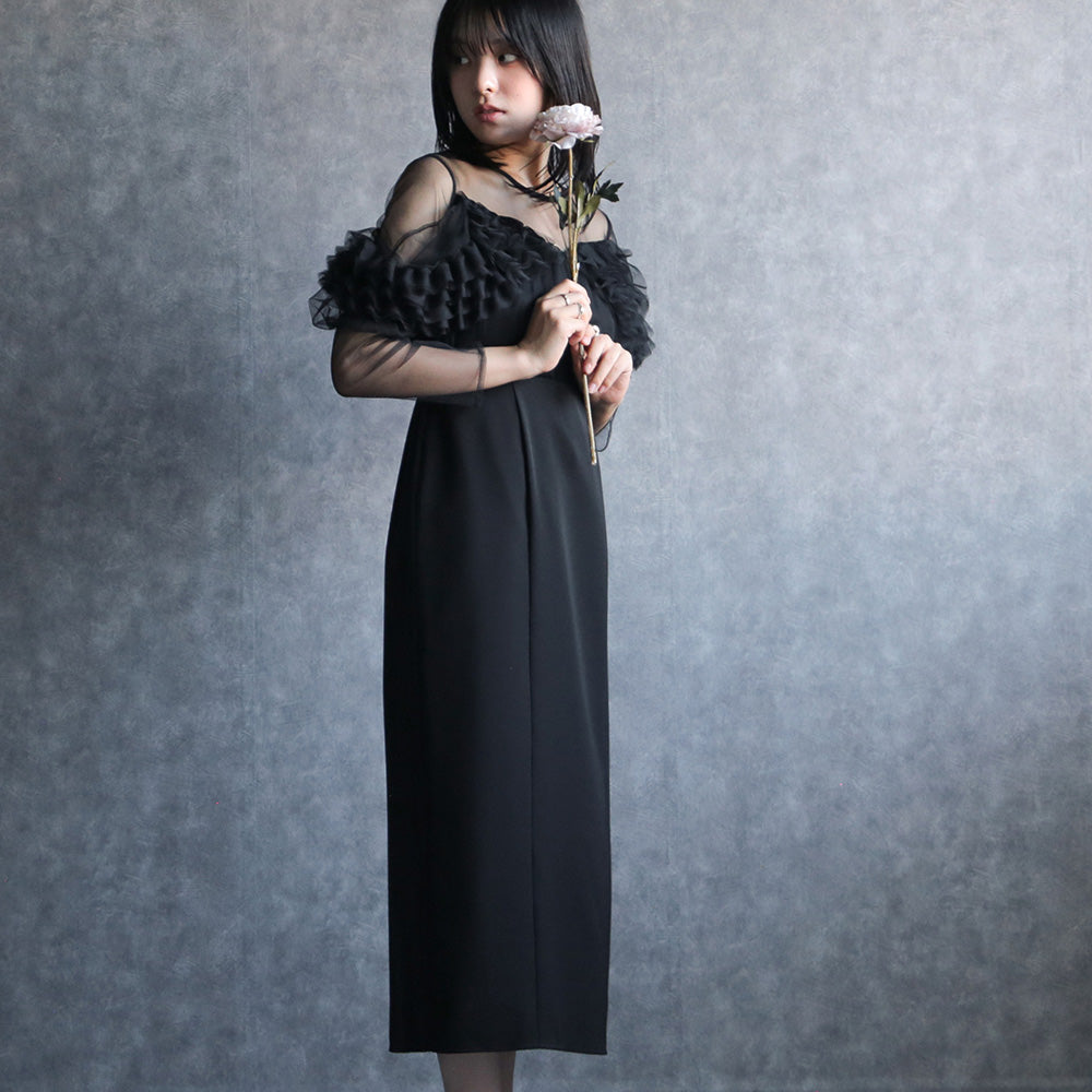 【お問い合わせ】 300182 リッチチュールオフショルペンシルドレス