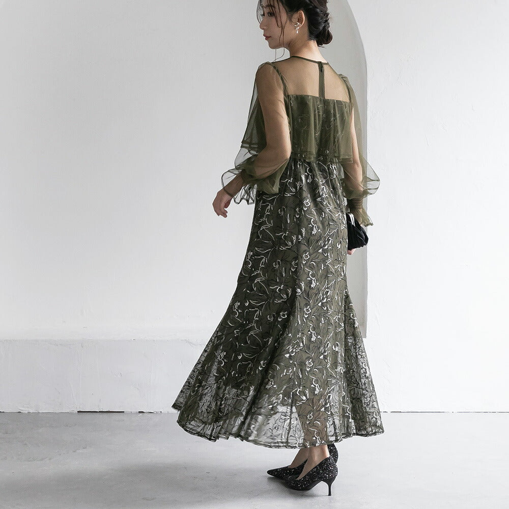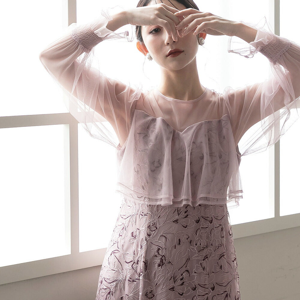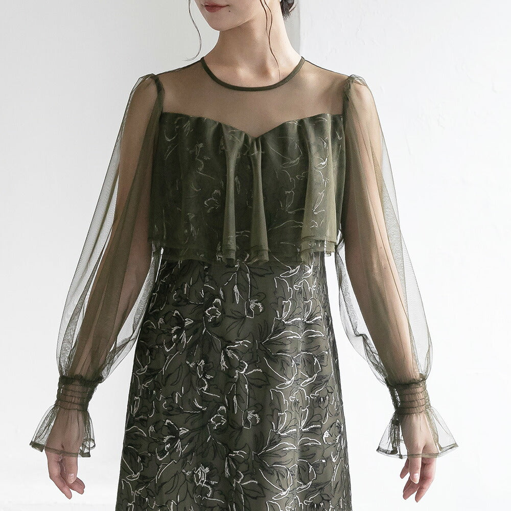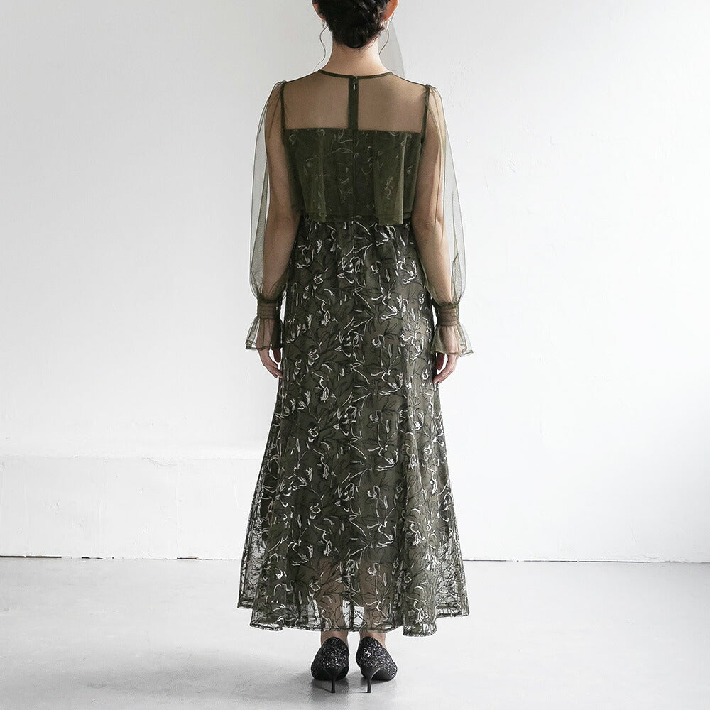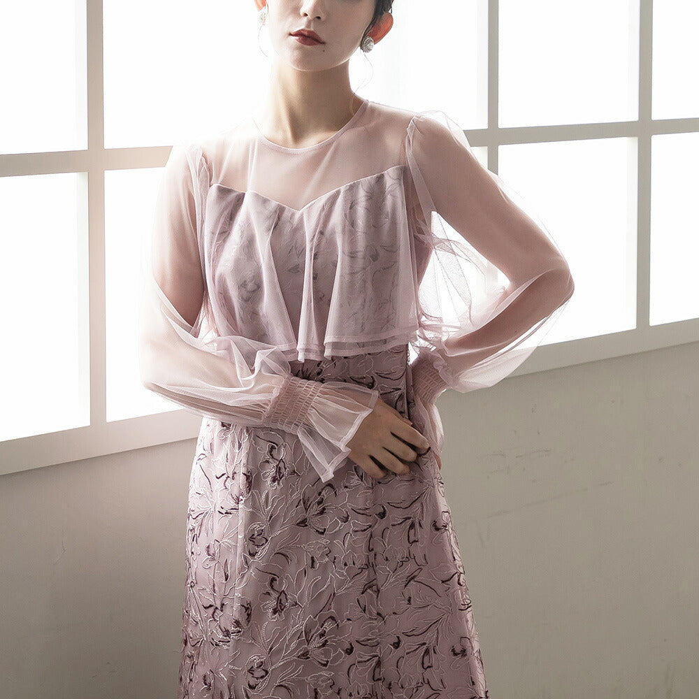 300192 エンブロイダリーチュールコンビドレス
