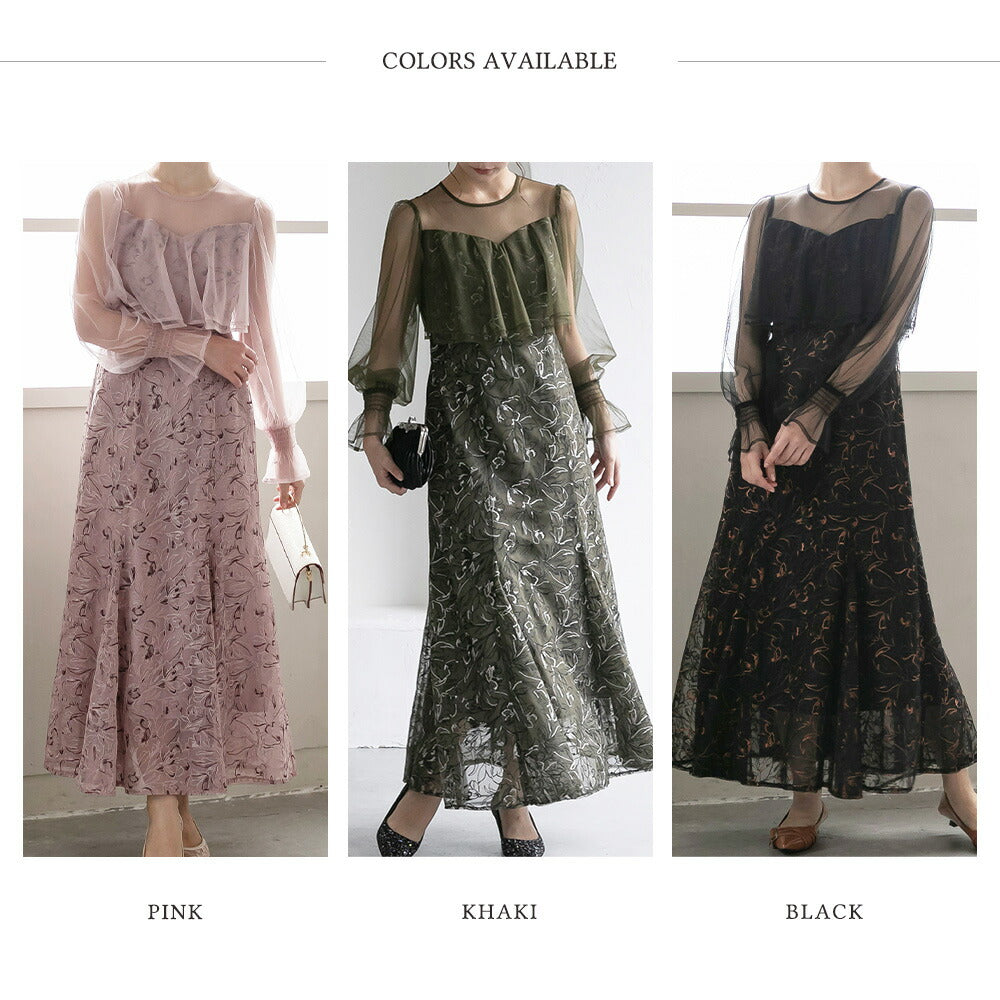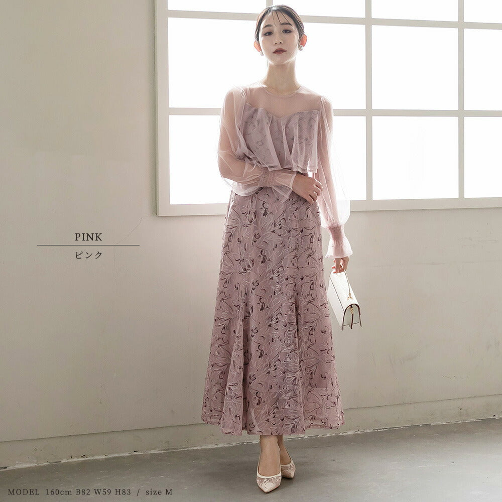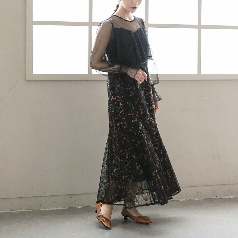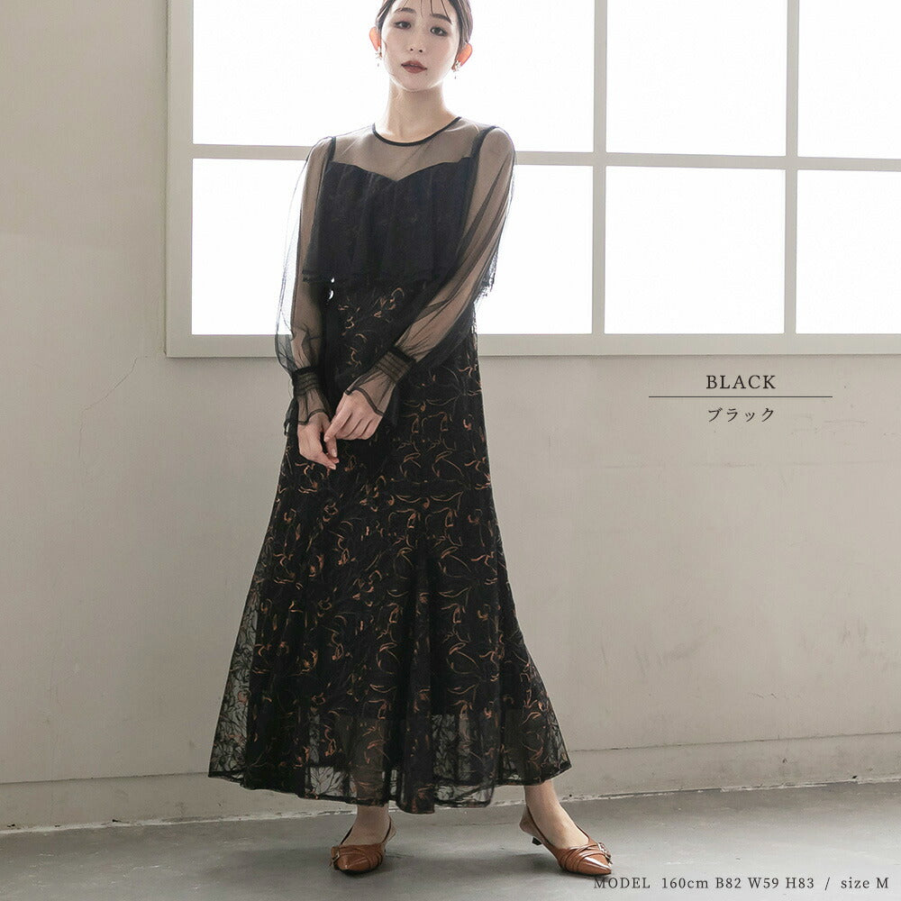 300192 エンブロイダリーチュールコンビドレス