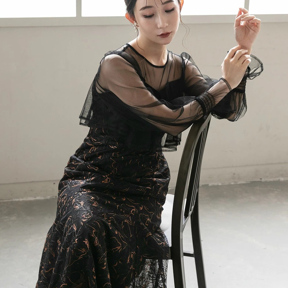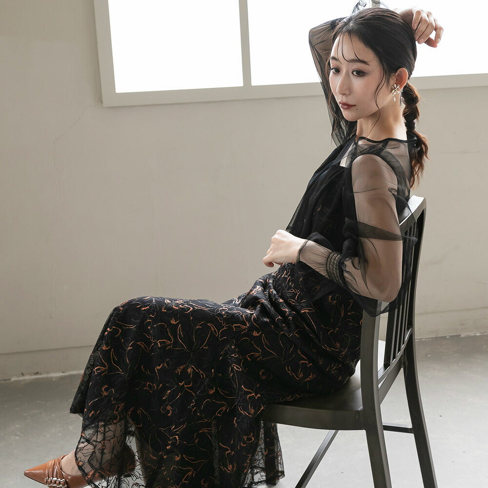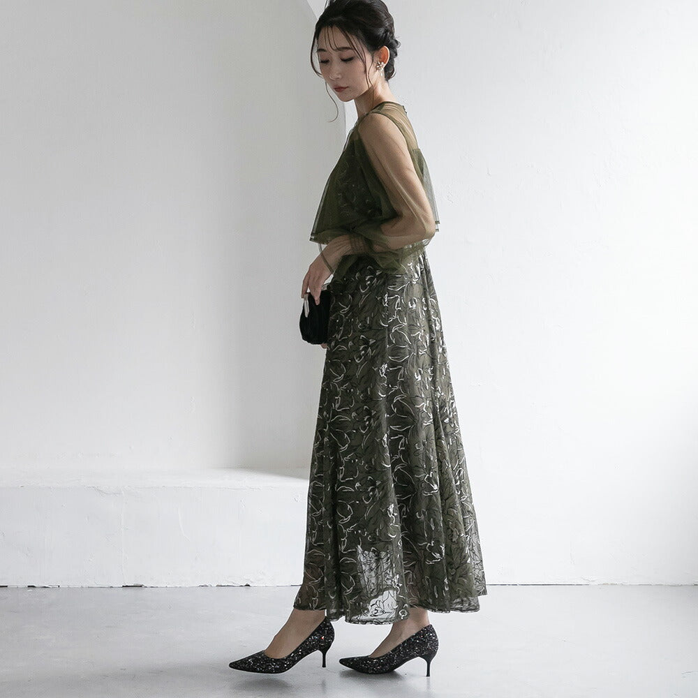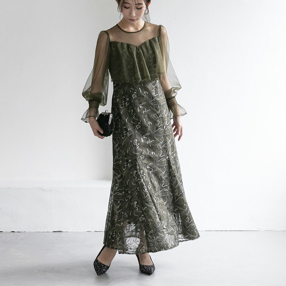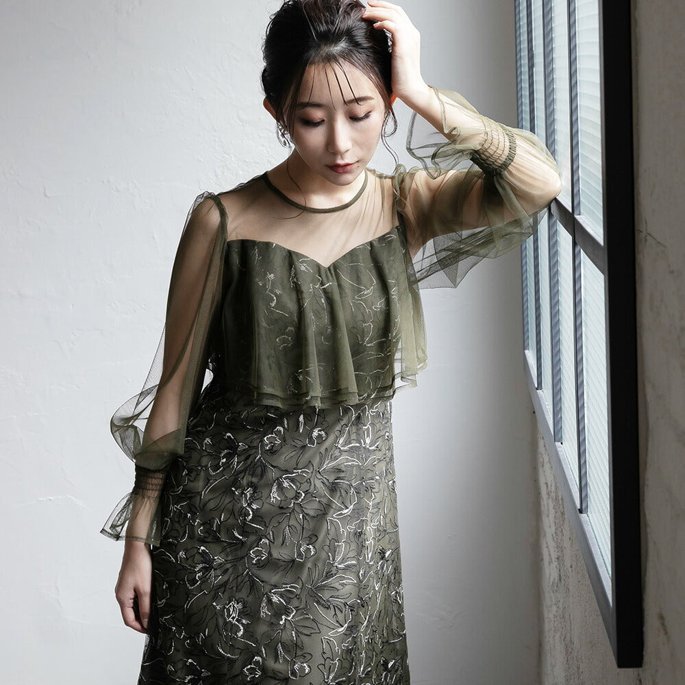 300192 エンブロイダリーチュールコンビドレス
