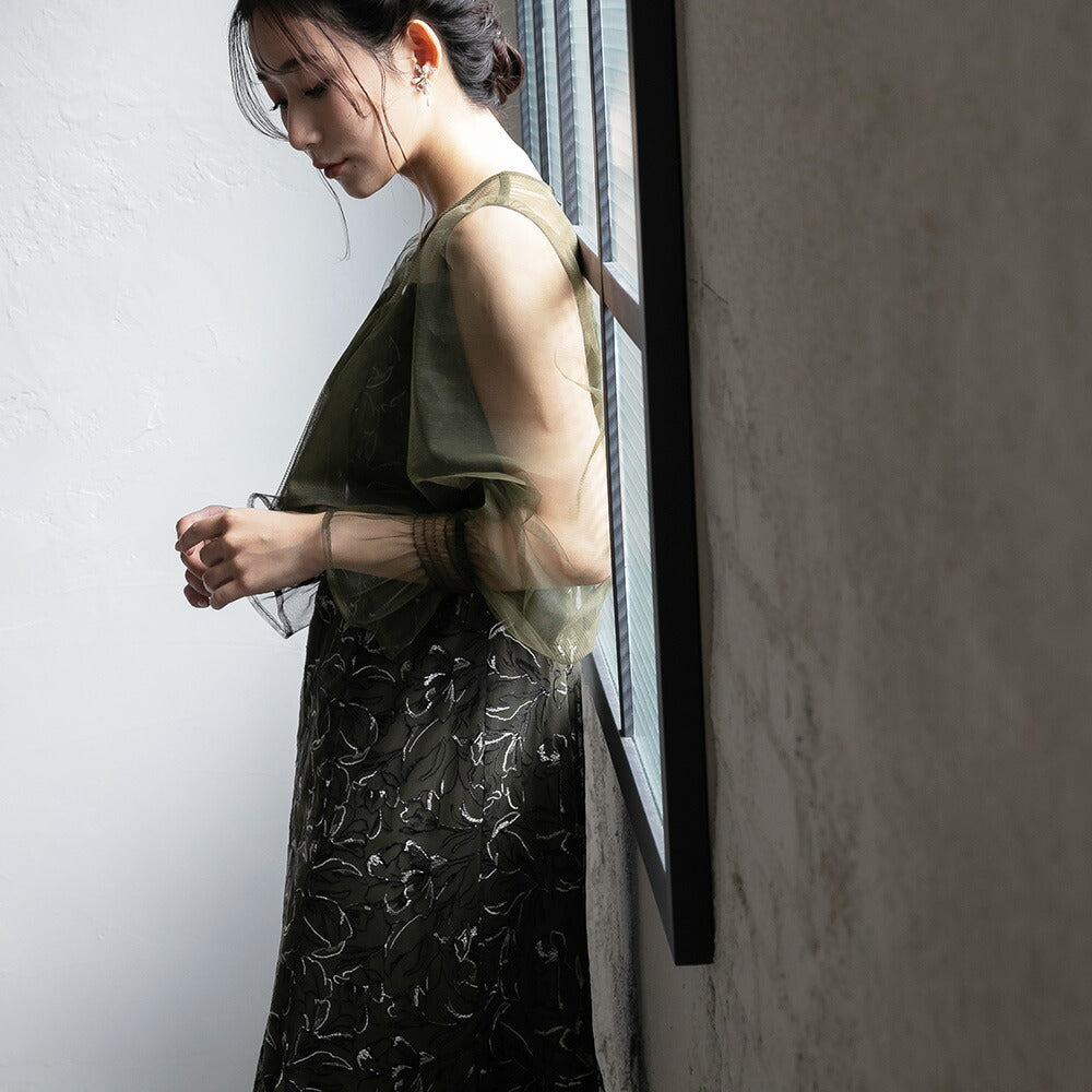 【お問い合わせ】 300192 エンブロイダリーチュールコンビドレス