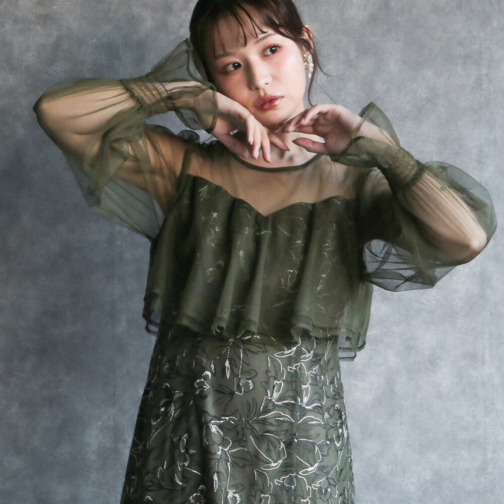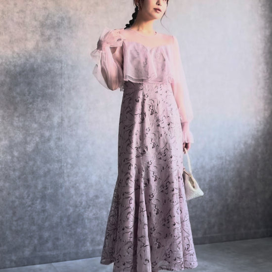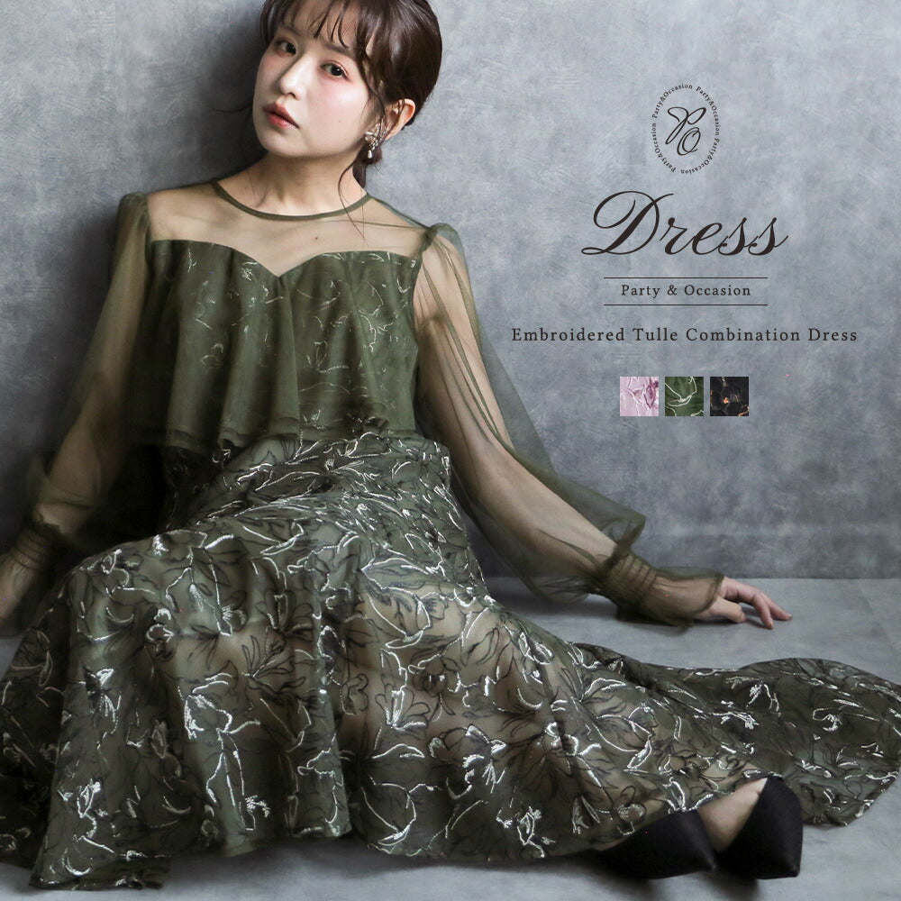300192 エンブロイダリーチュールコンビドレス