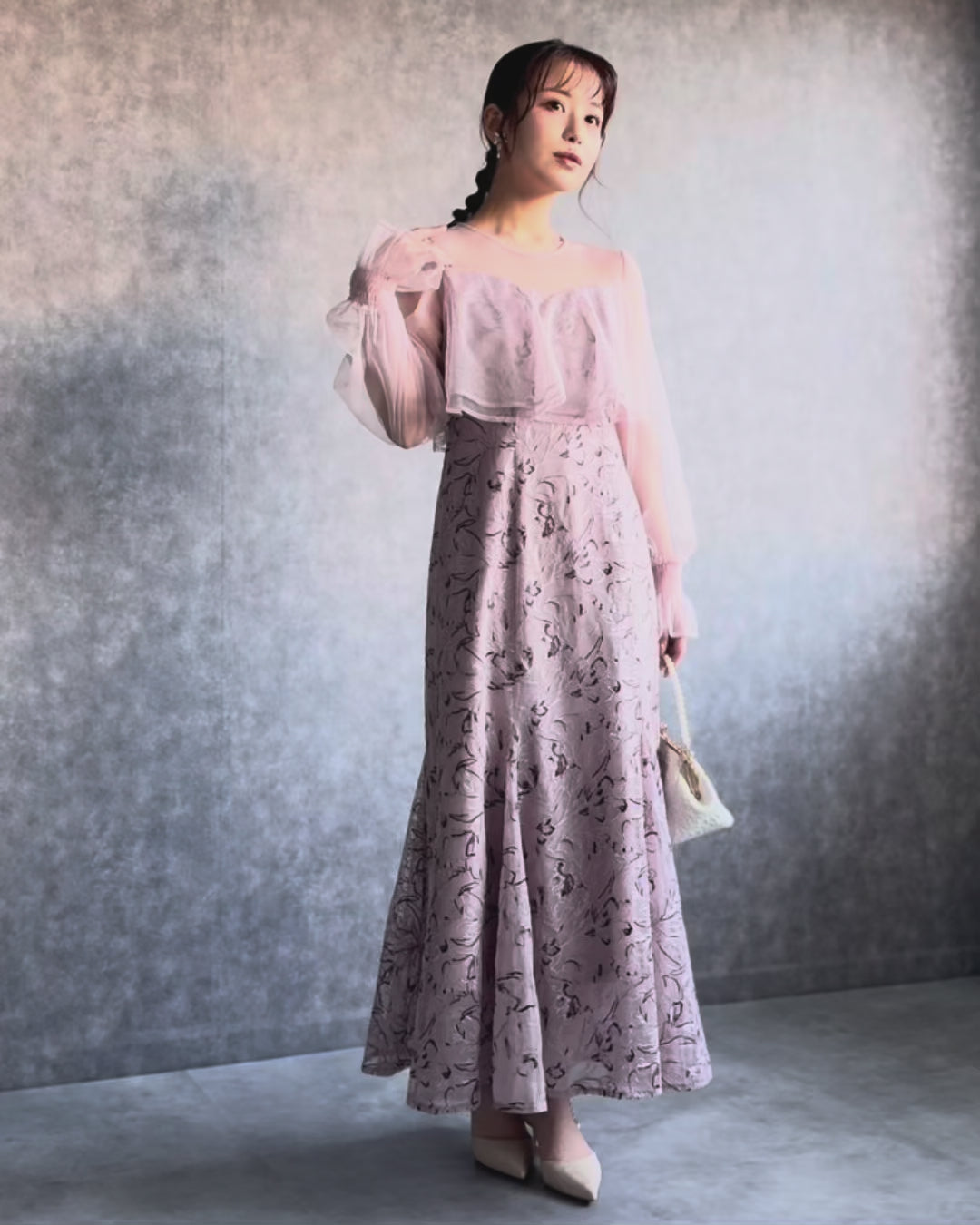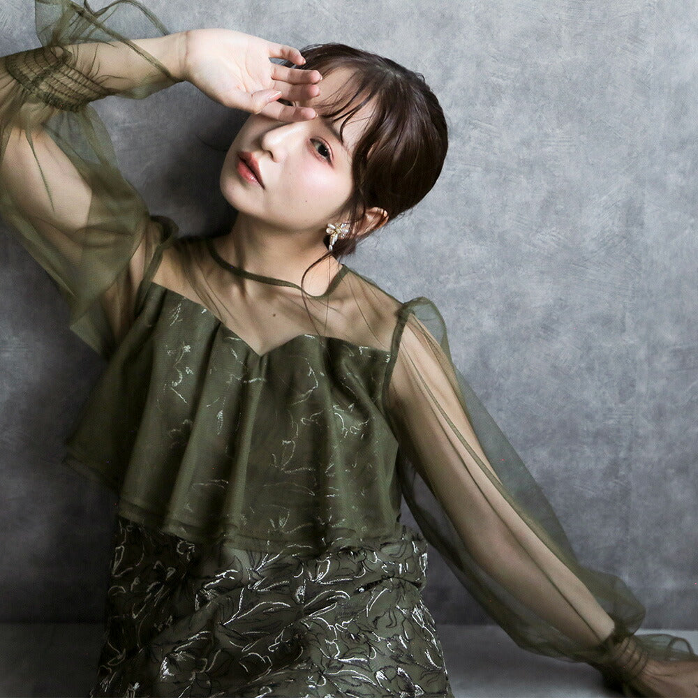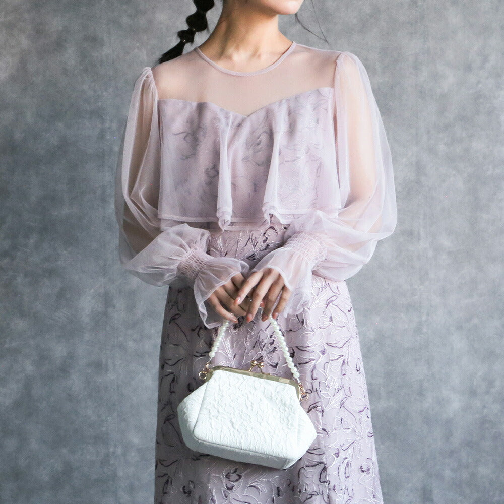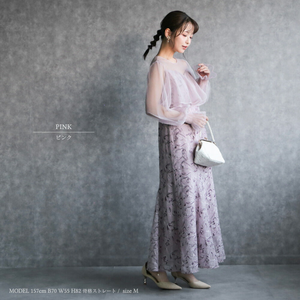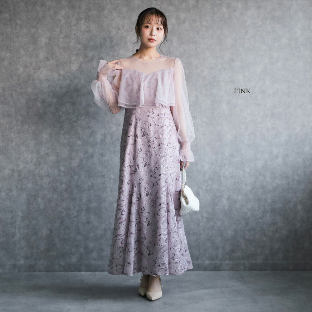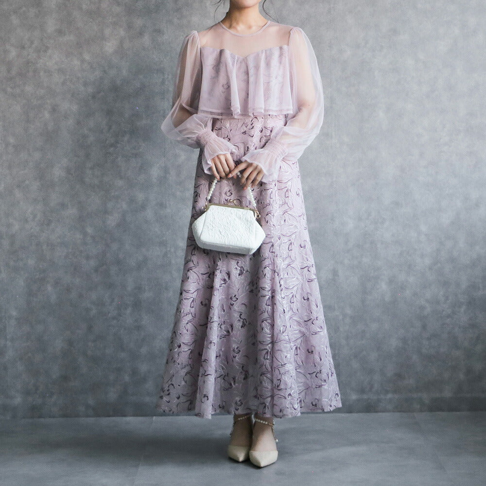 【お問い合わせ】 300192 エンブロイダリーチュールコンビドレス