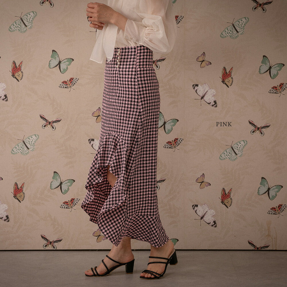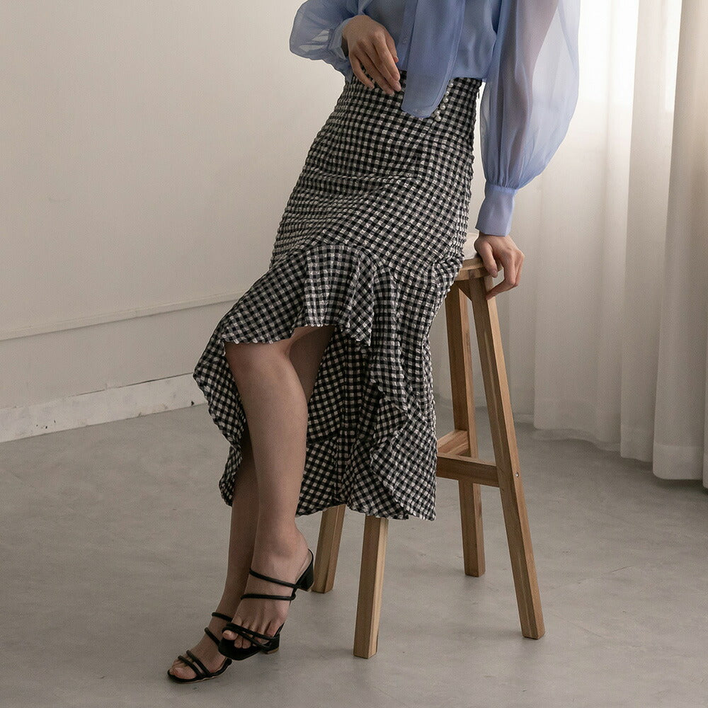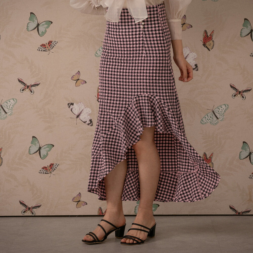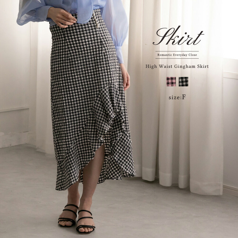 330028 ハイウエストギンガムチェックスカート