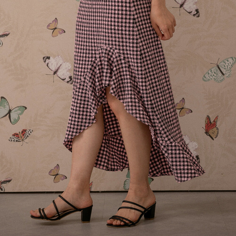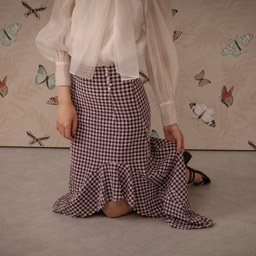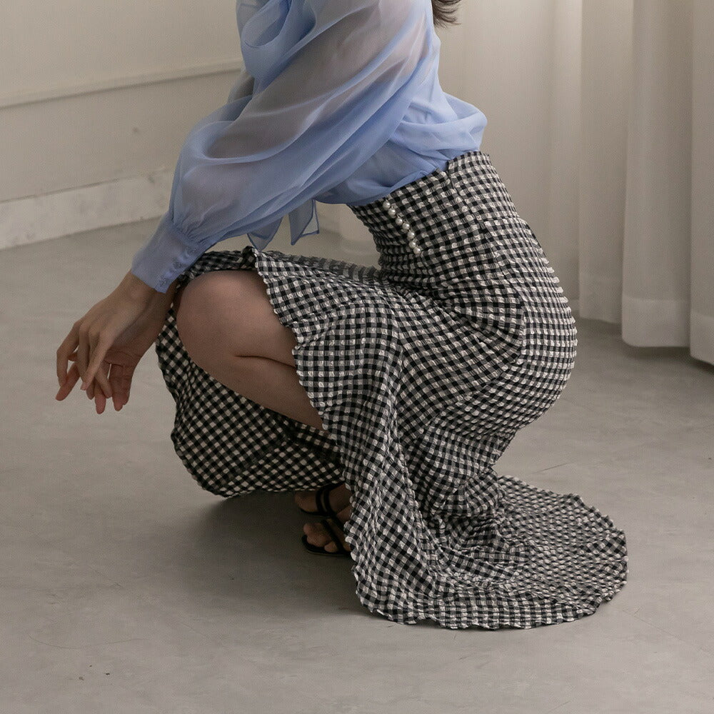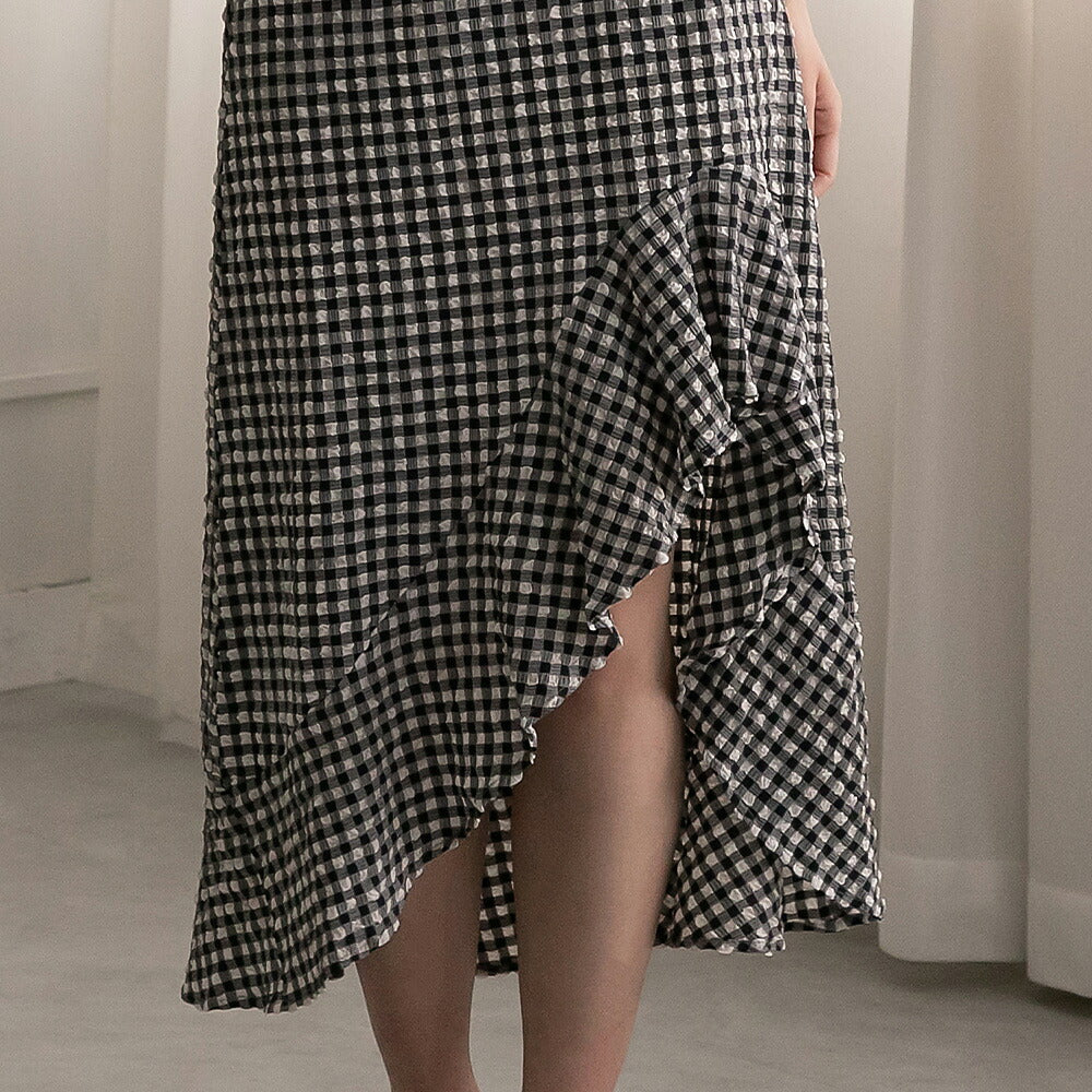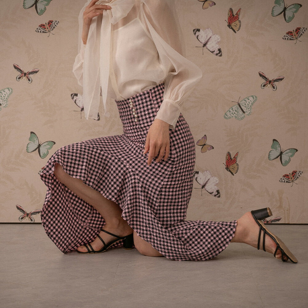 330028 ハイウエストギンガムチェックスカート