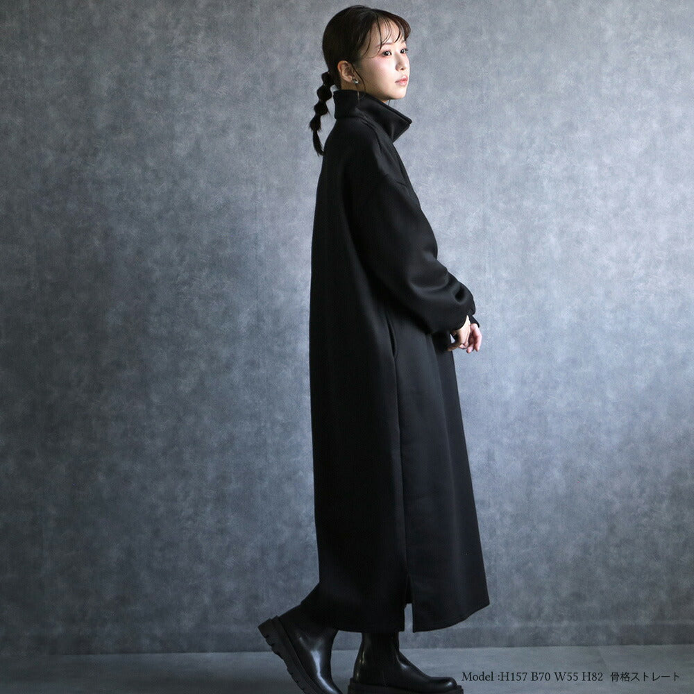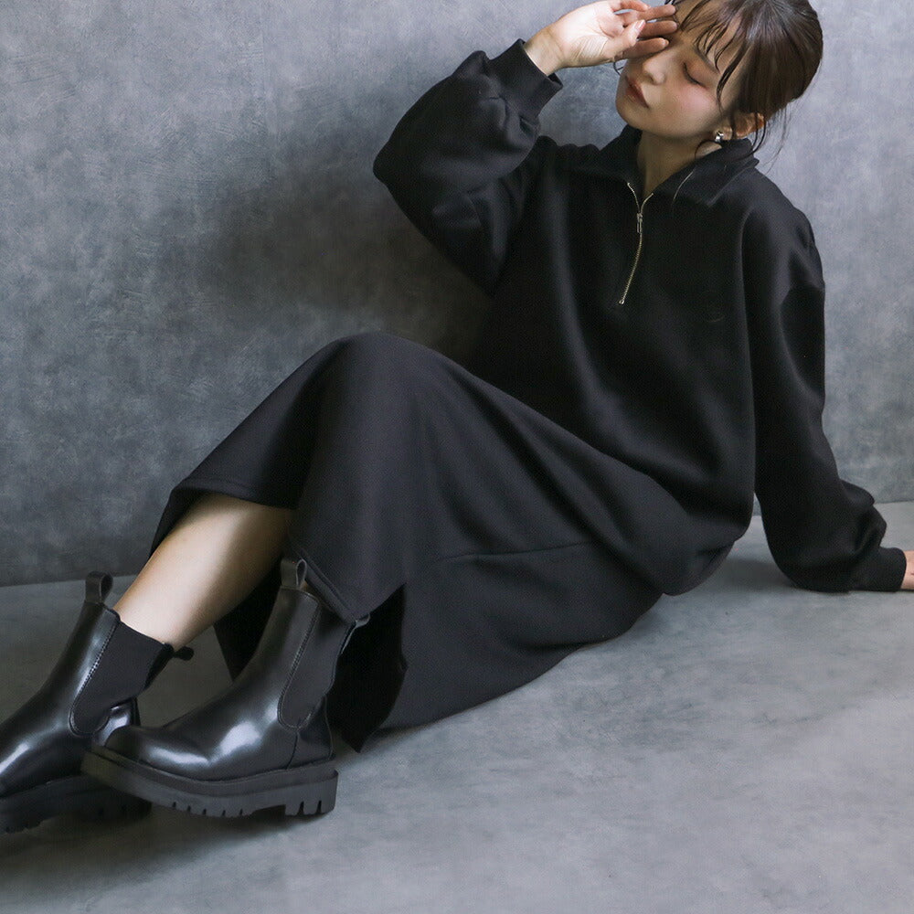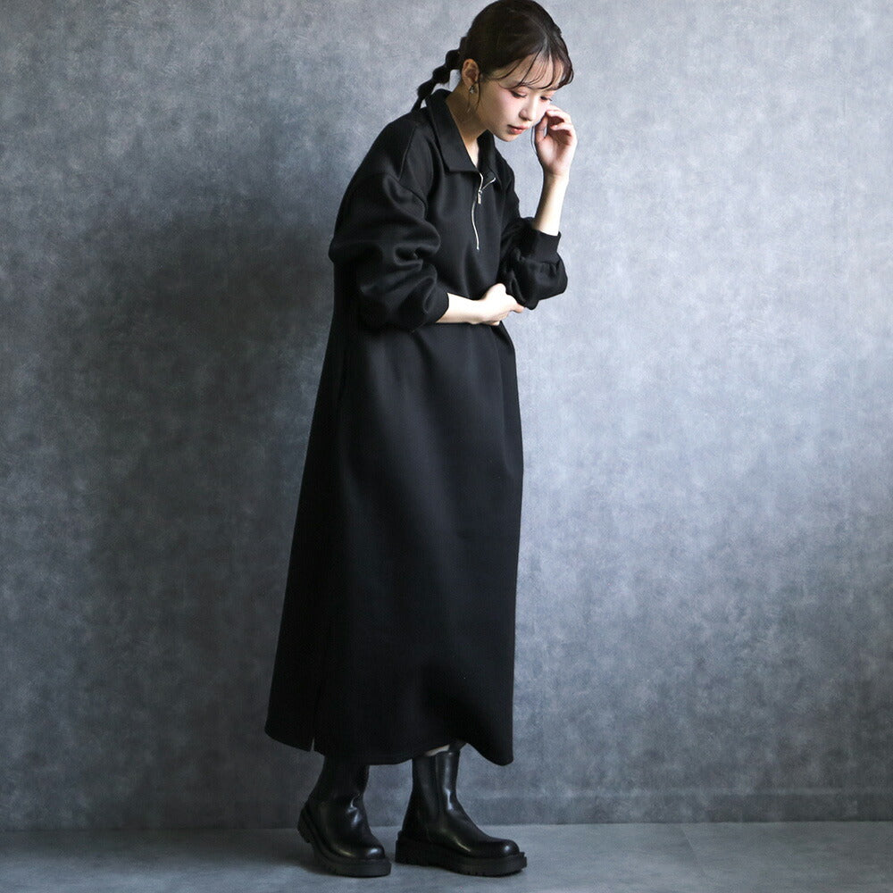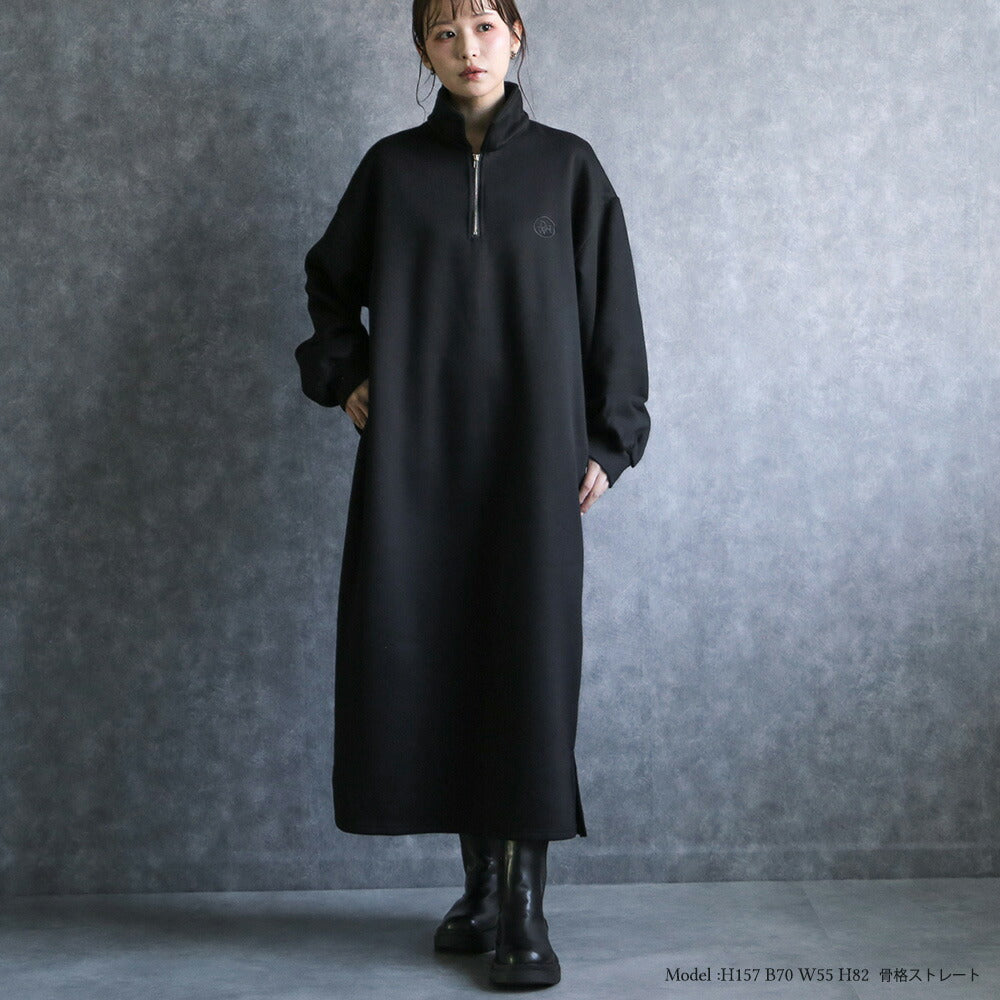 330102 ハーフジップ裏起毛スウェットワンピース