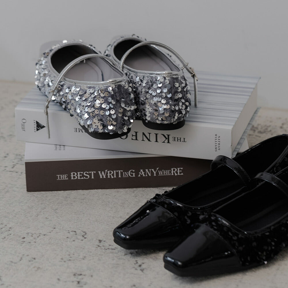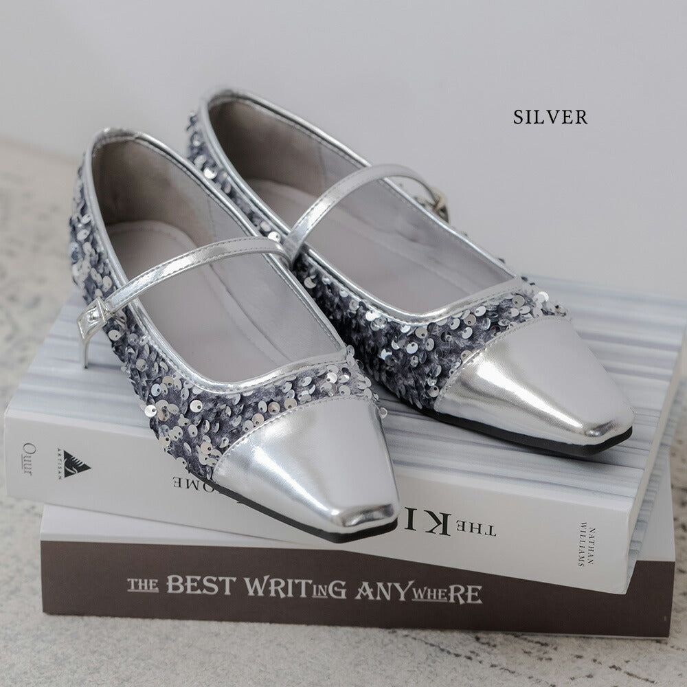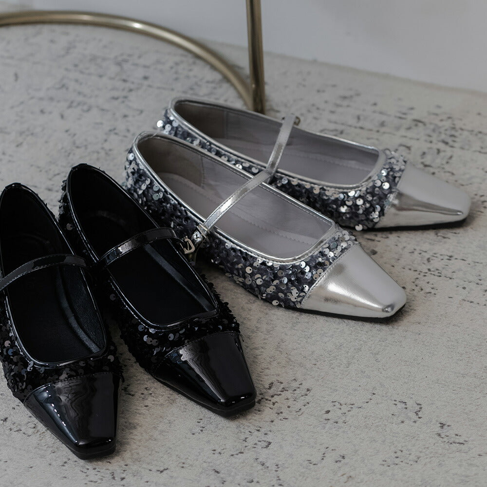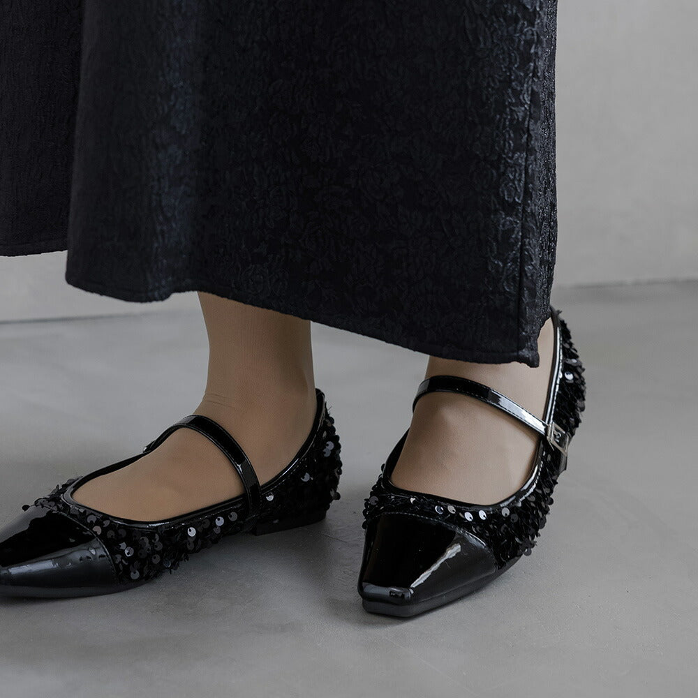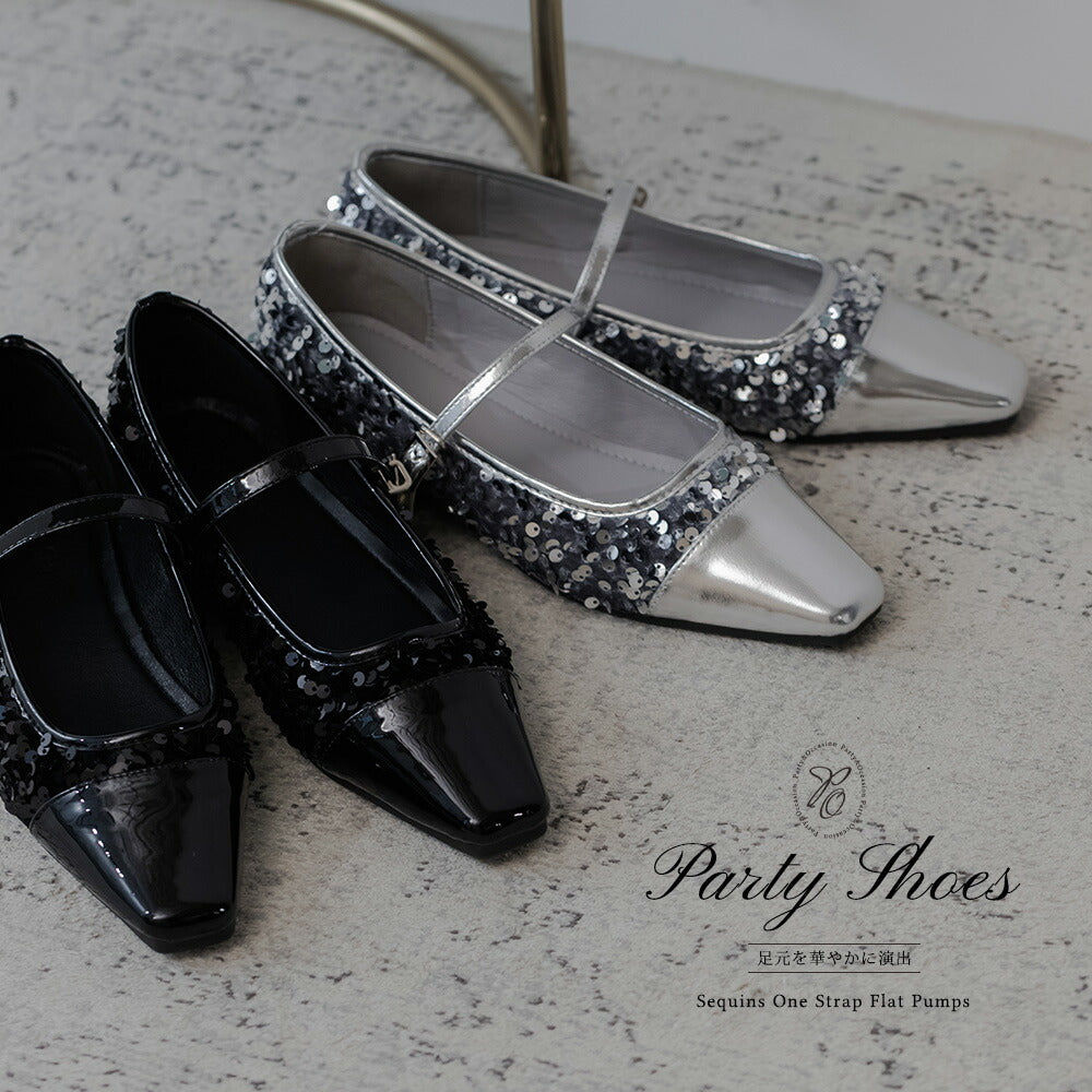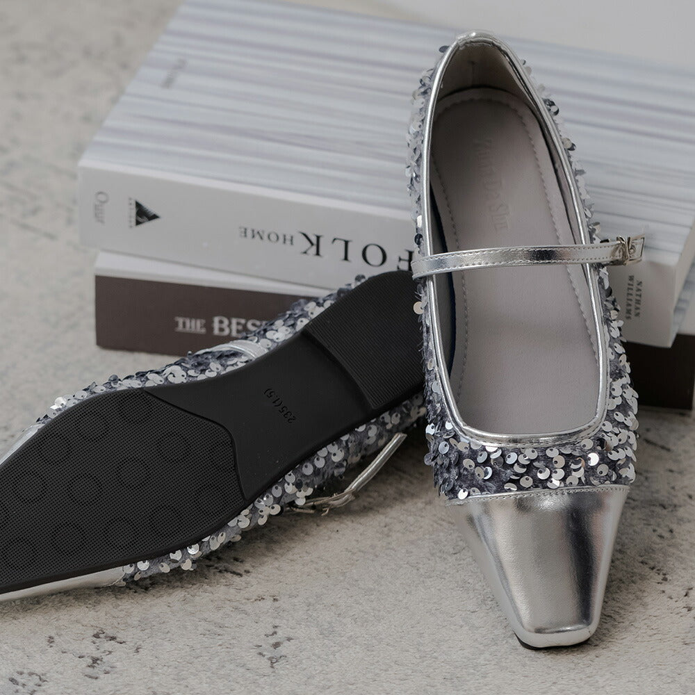 【お問い合わせ】 400021 スパンコールワンストラップフラットパンプス
