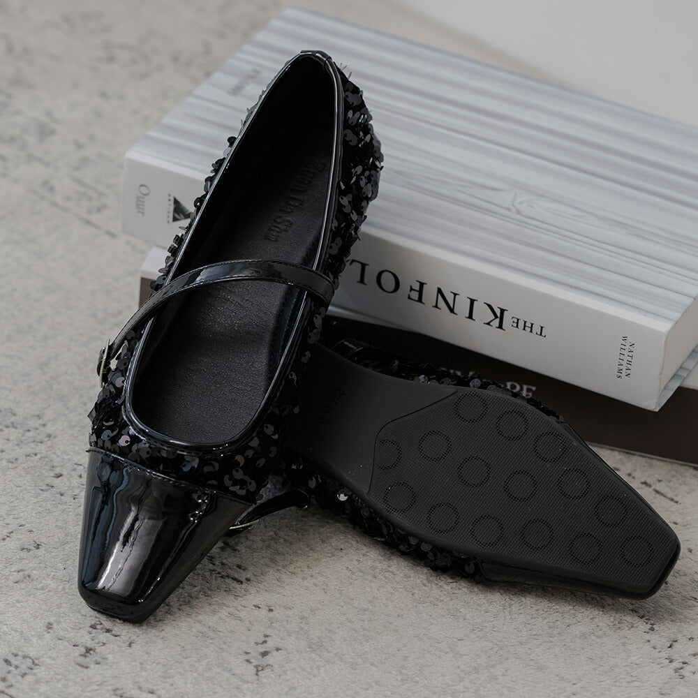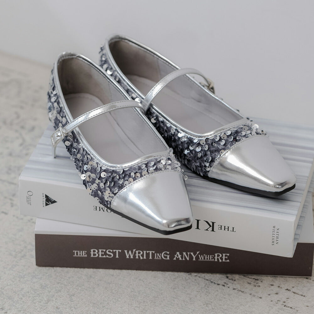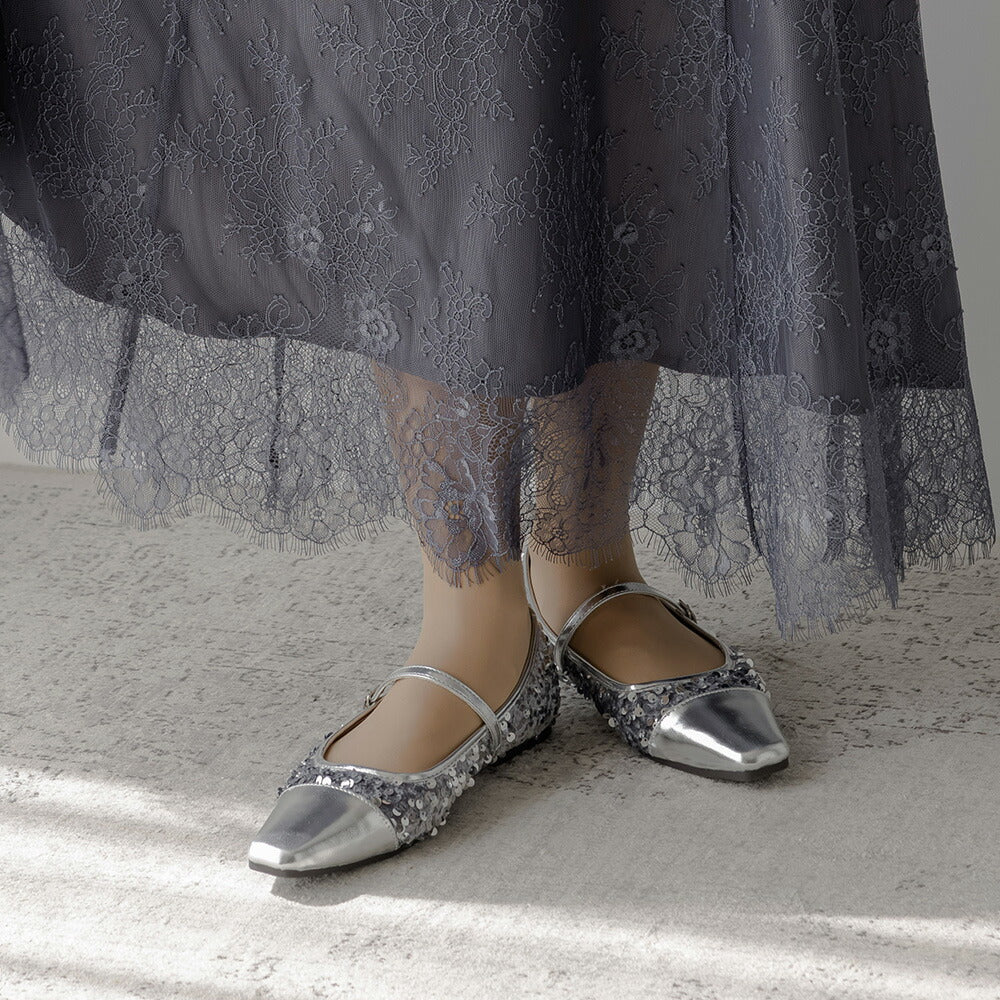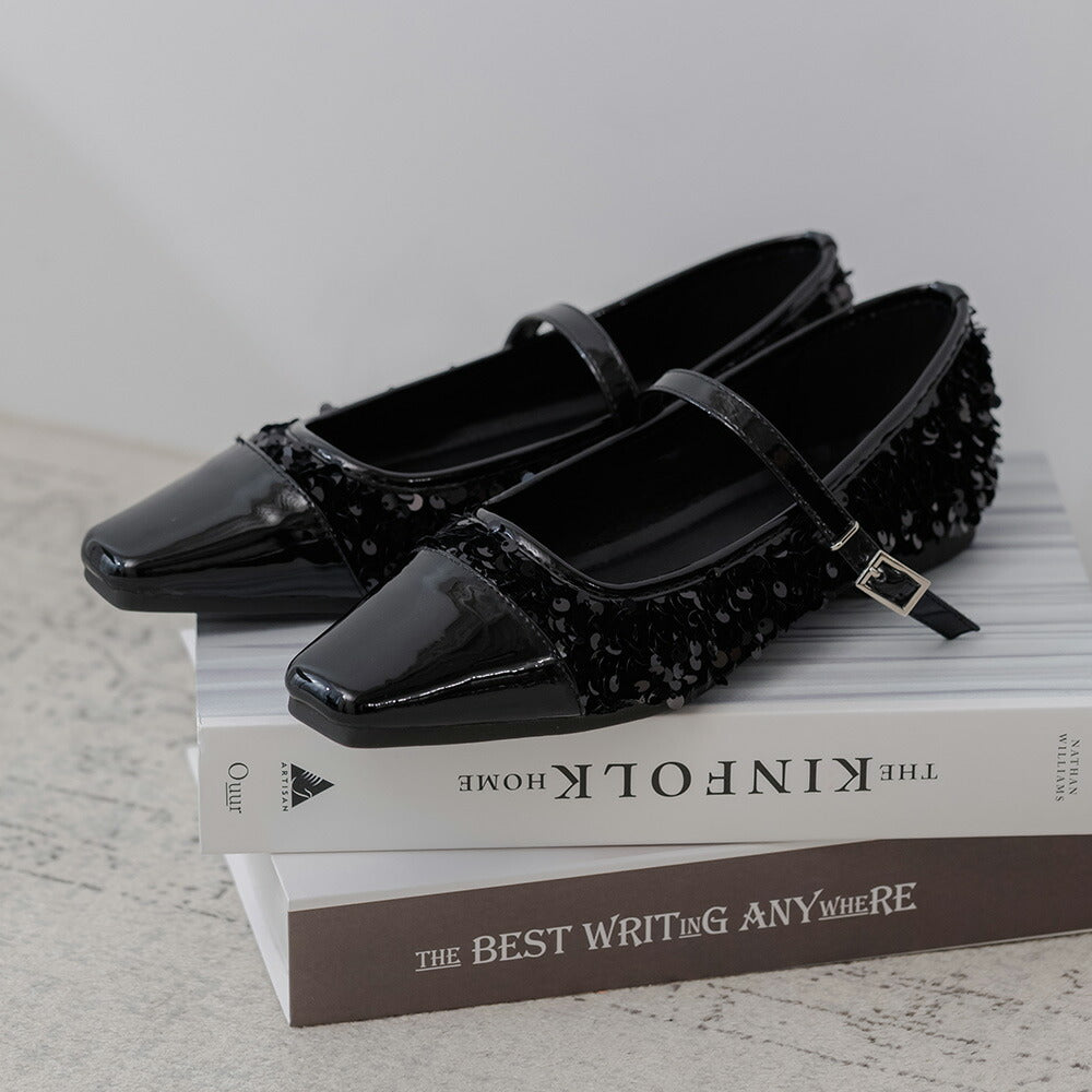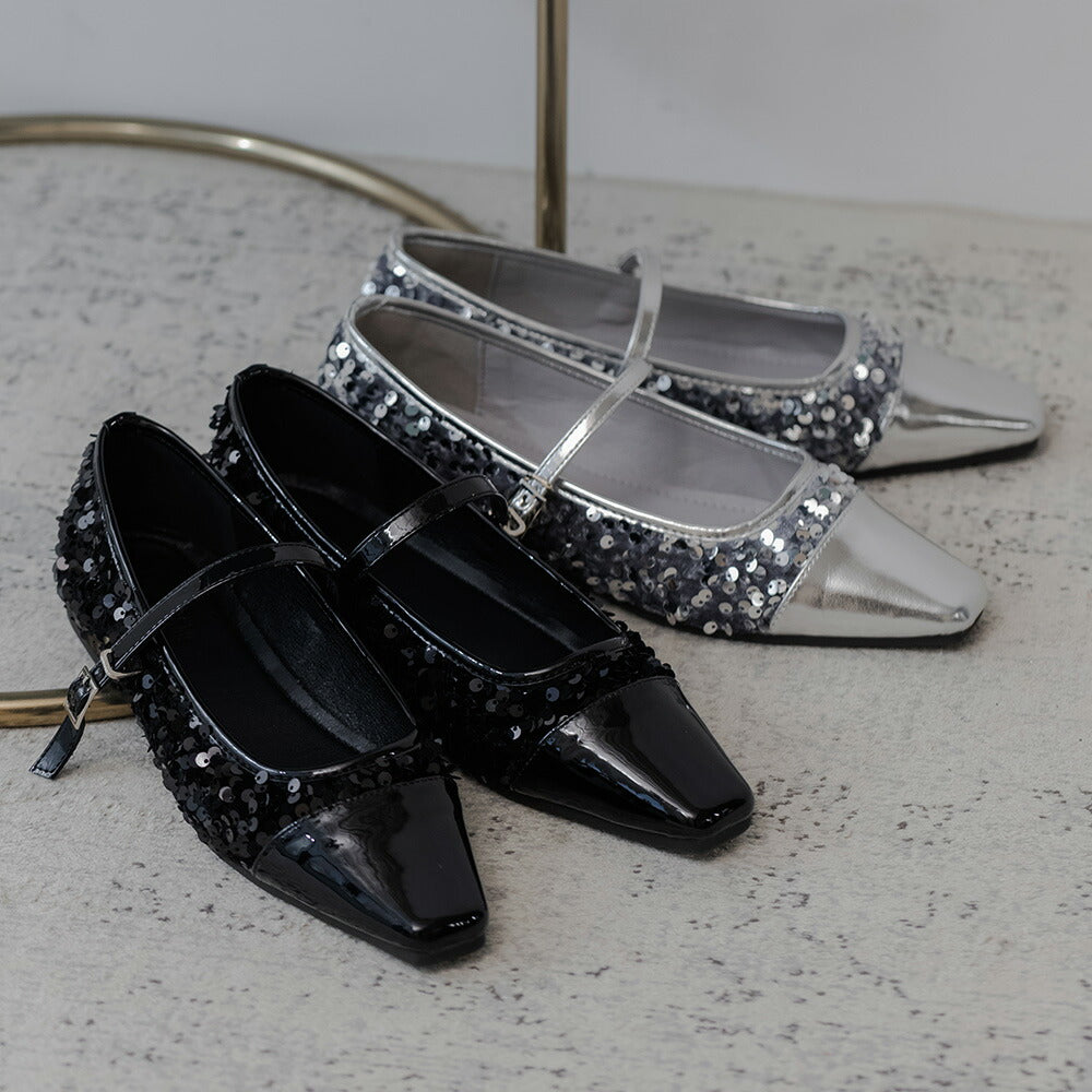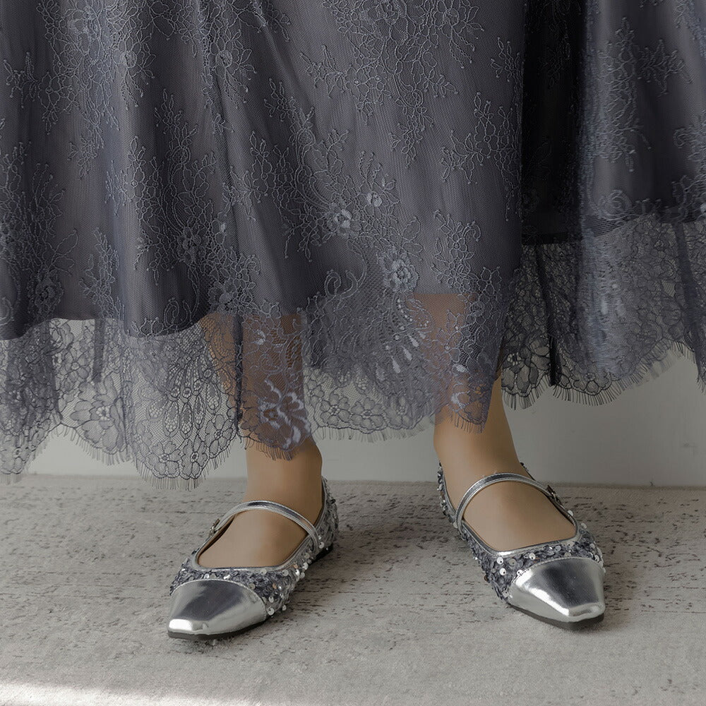【お問い合わせ】 400021 スパンコールワンストラップフラットパンプス