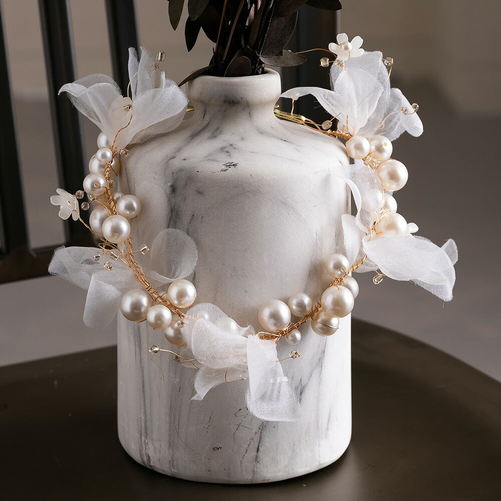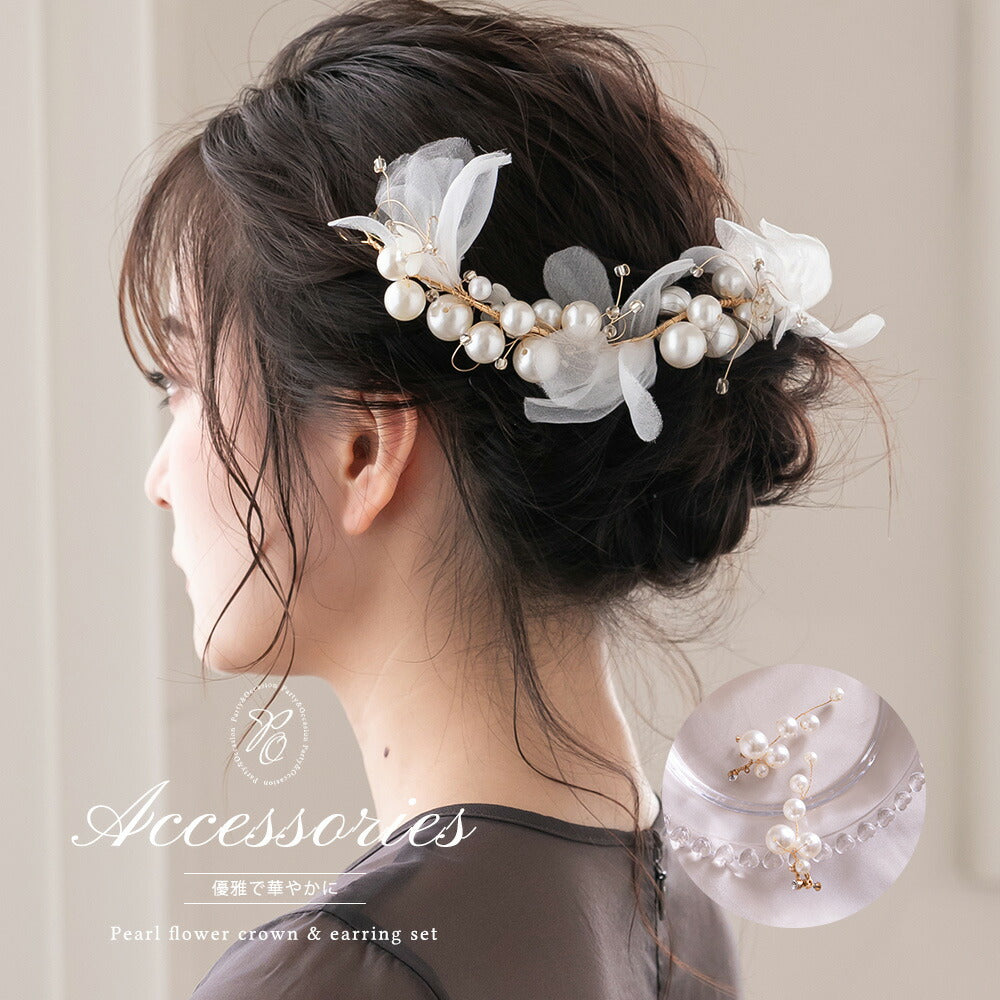 【お問い合わせ】 550056 パールフラワークラウン&イヤリングセット