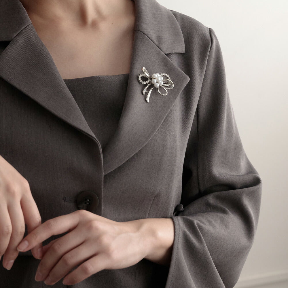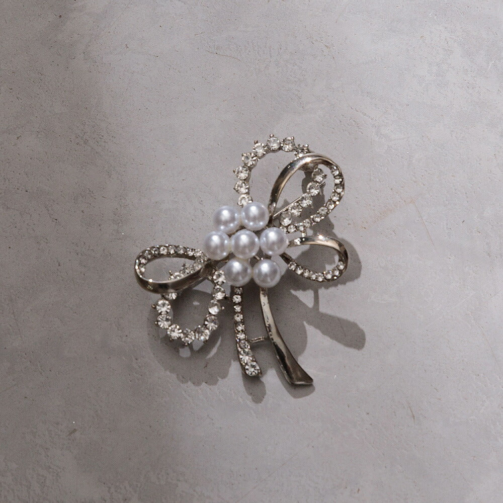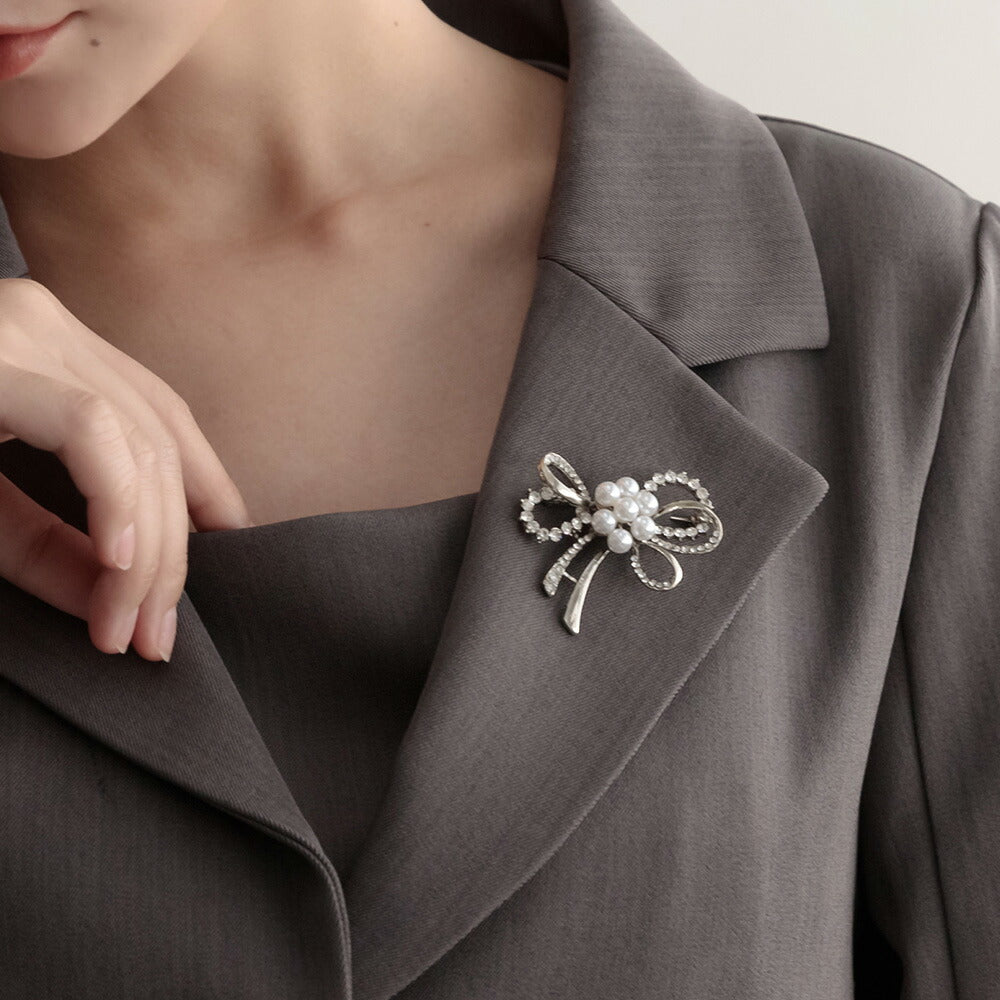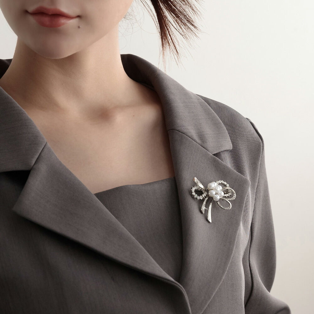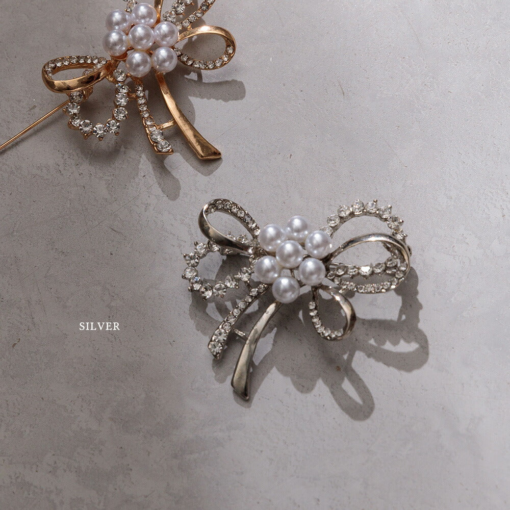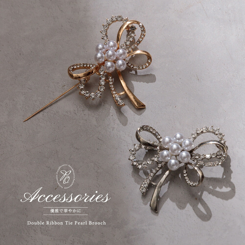 【お問い合わせ】 550115 ダブルリボンタイパールブローチ