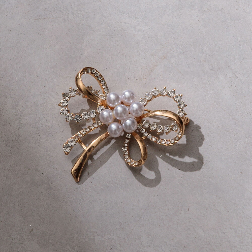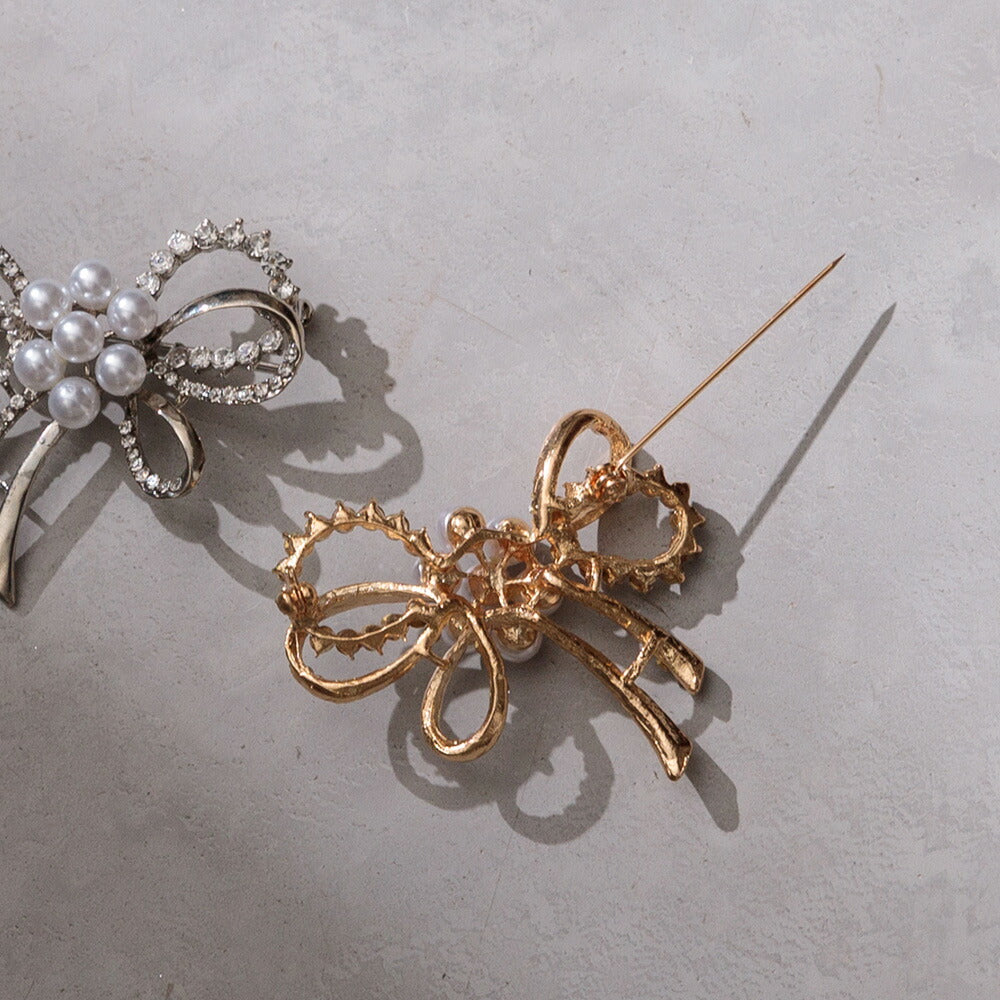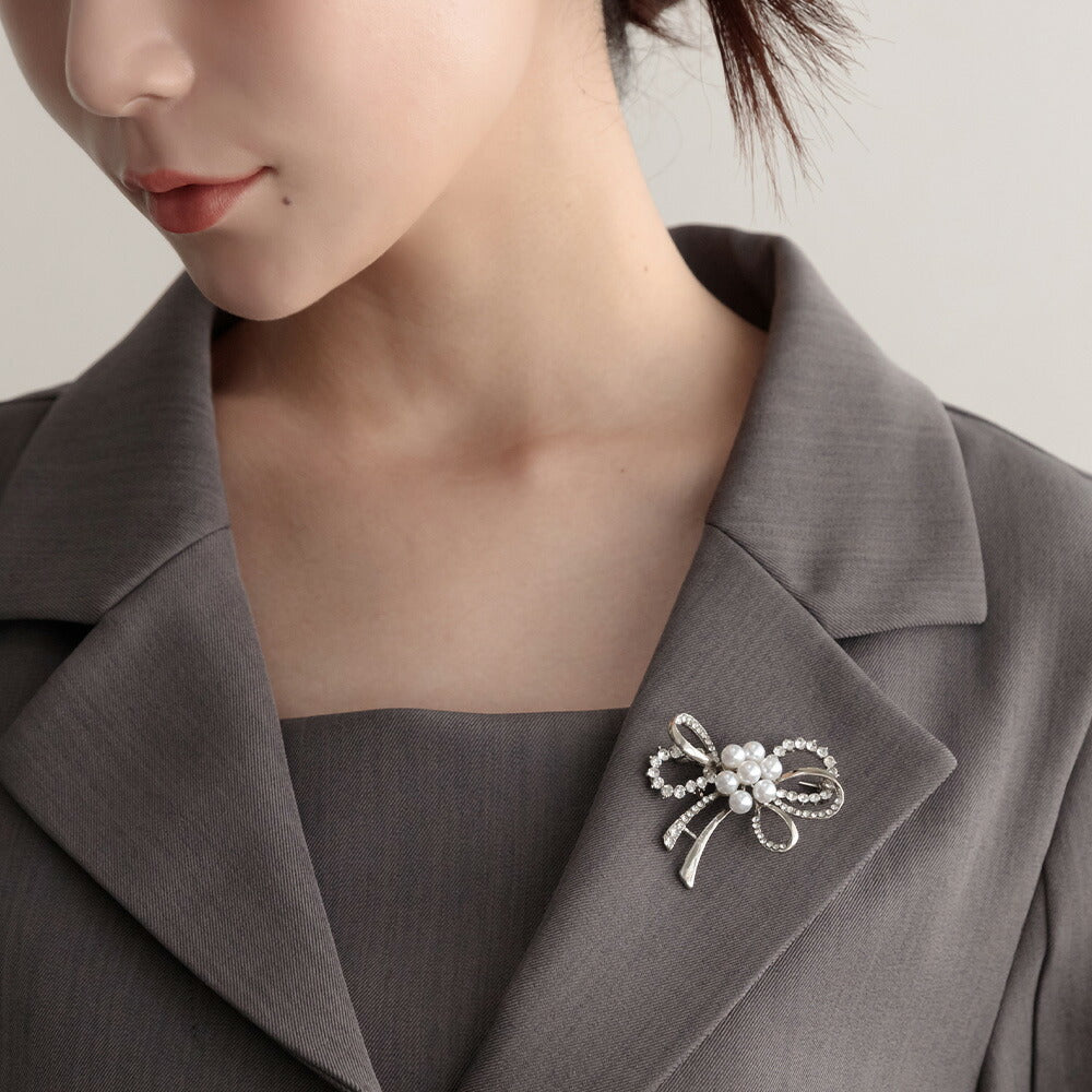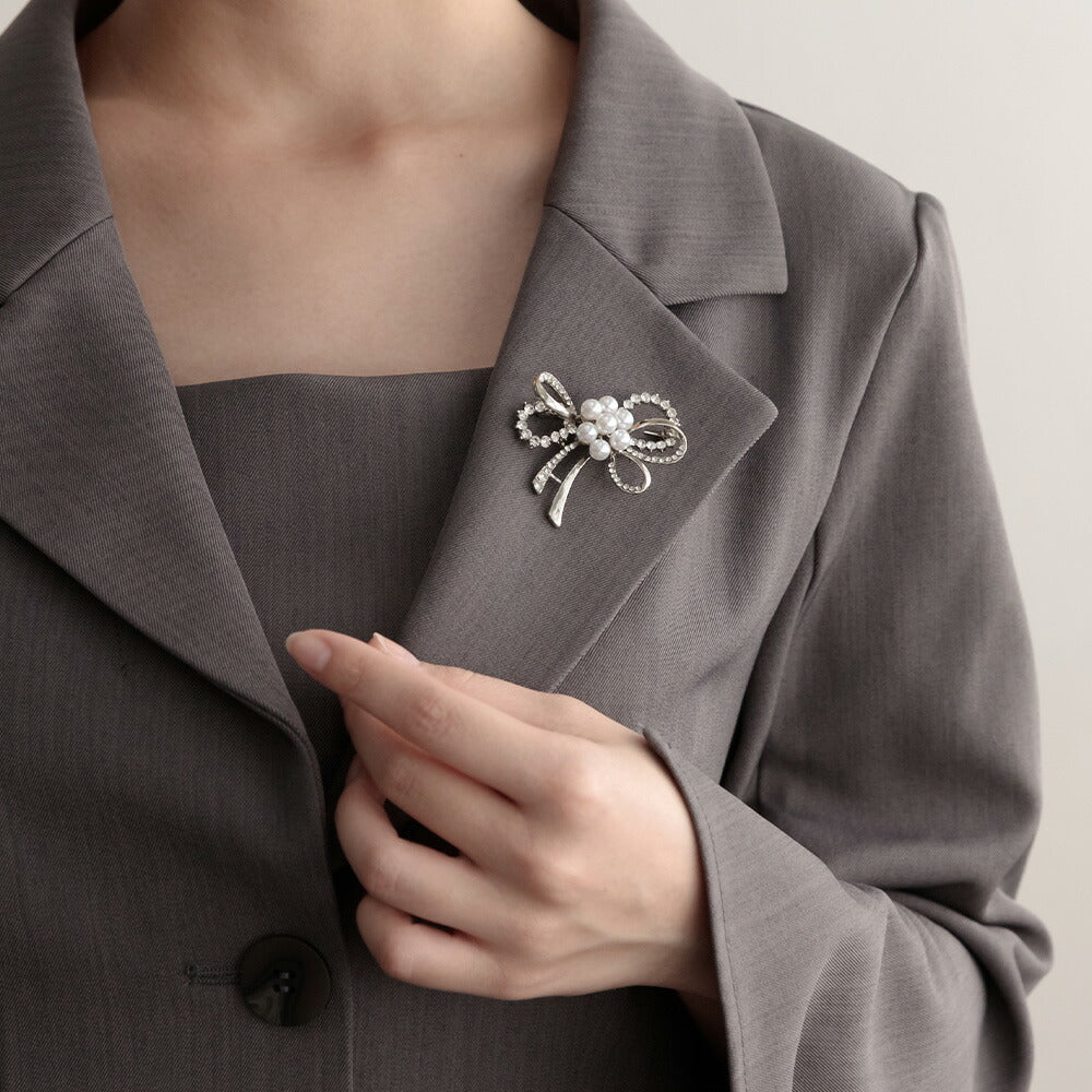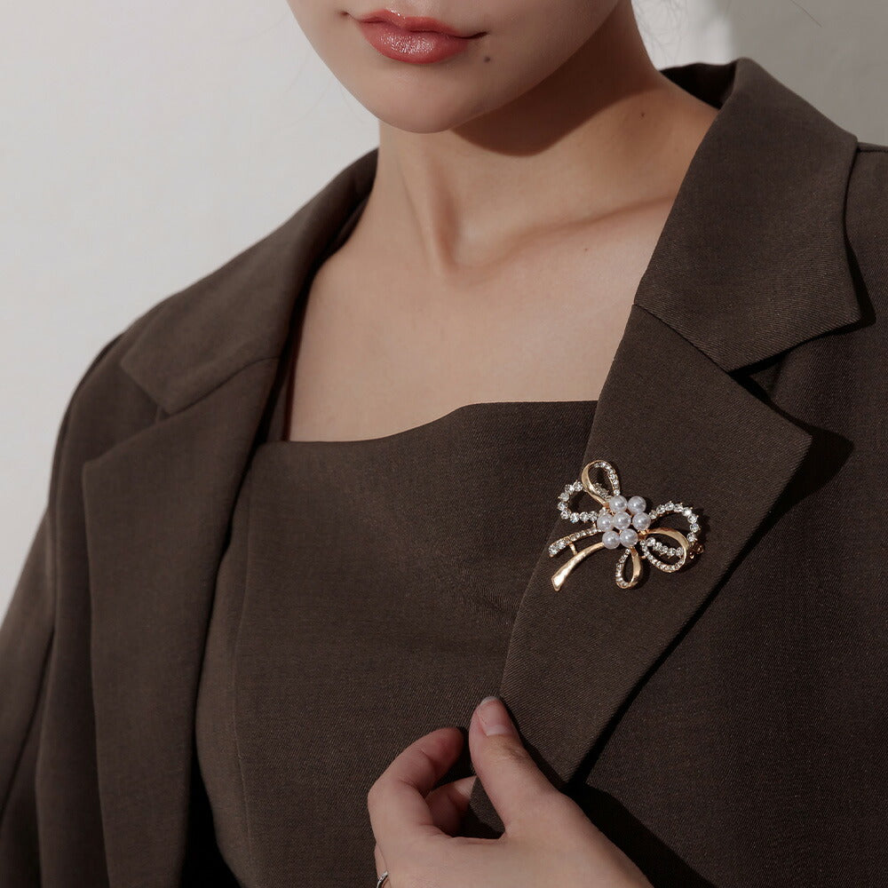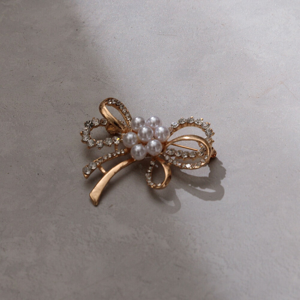 【お問い合わせ】 550115 ダブルリボンタイパールブローチ