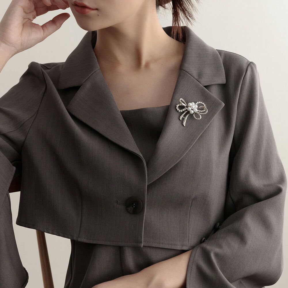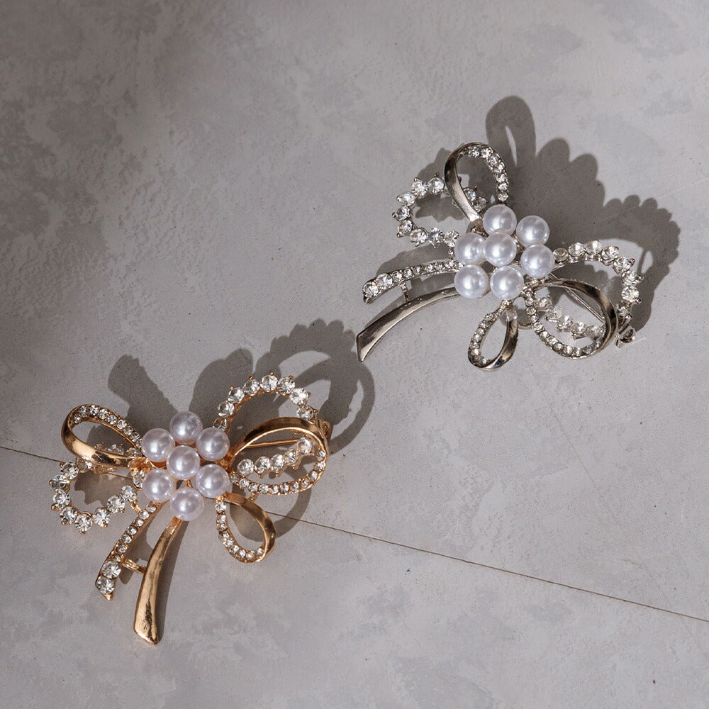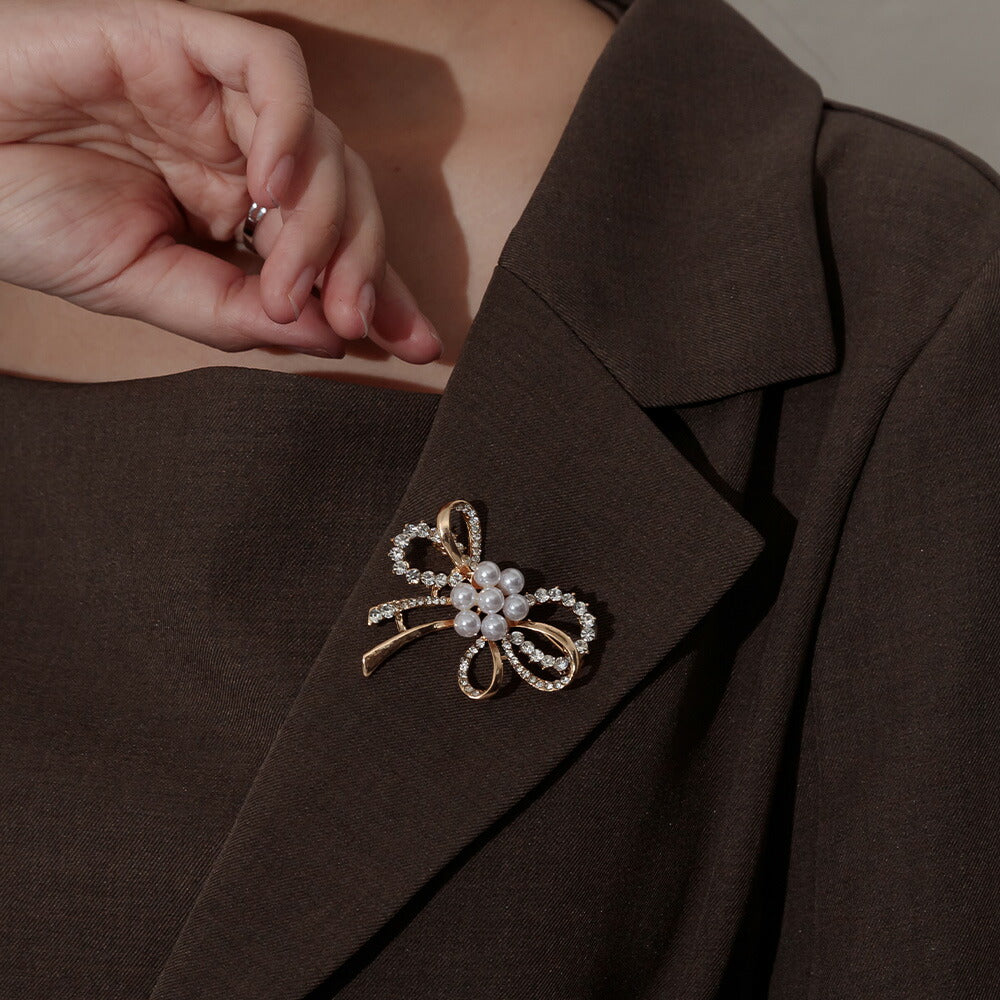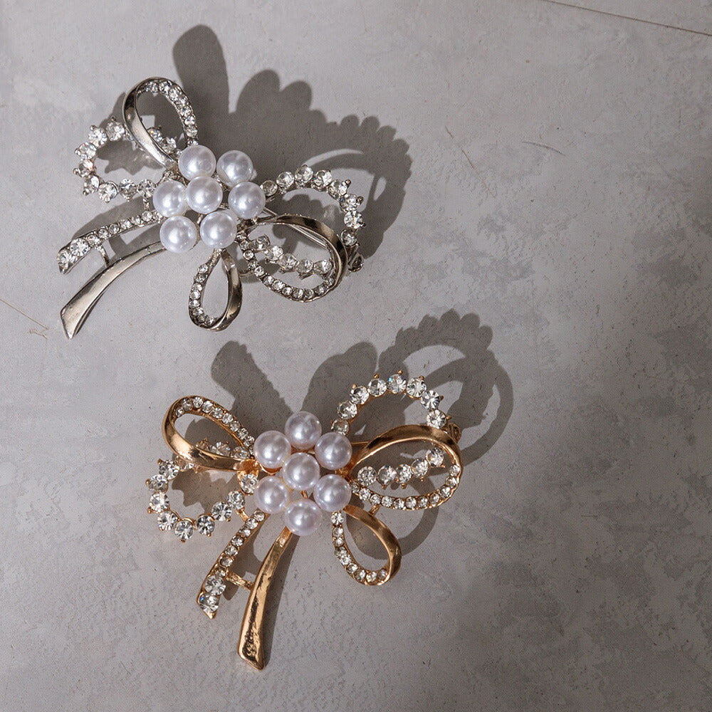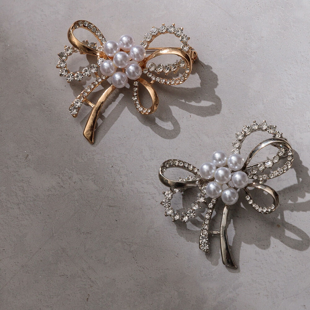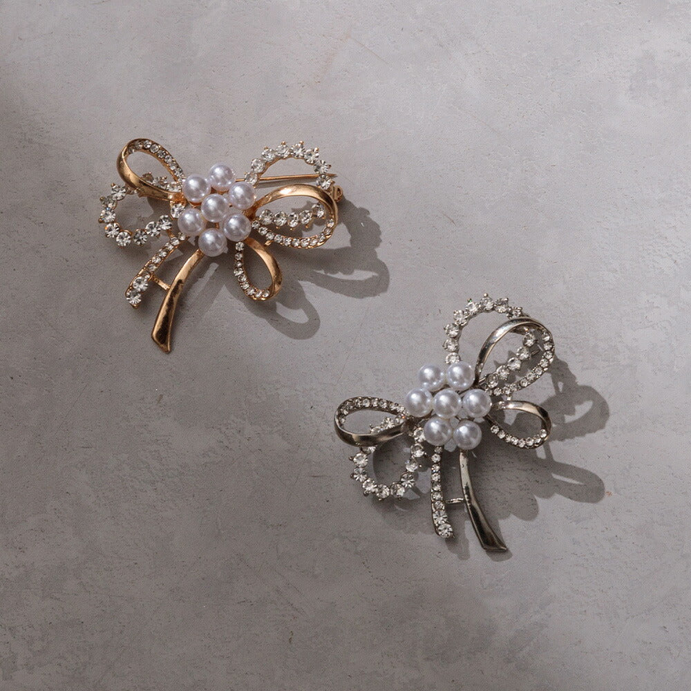 【お問い合わせ】 550115 ダブルリボンタイパールブローチ