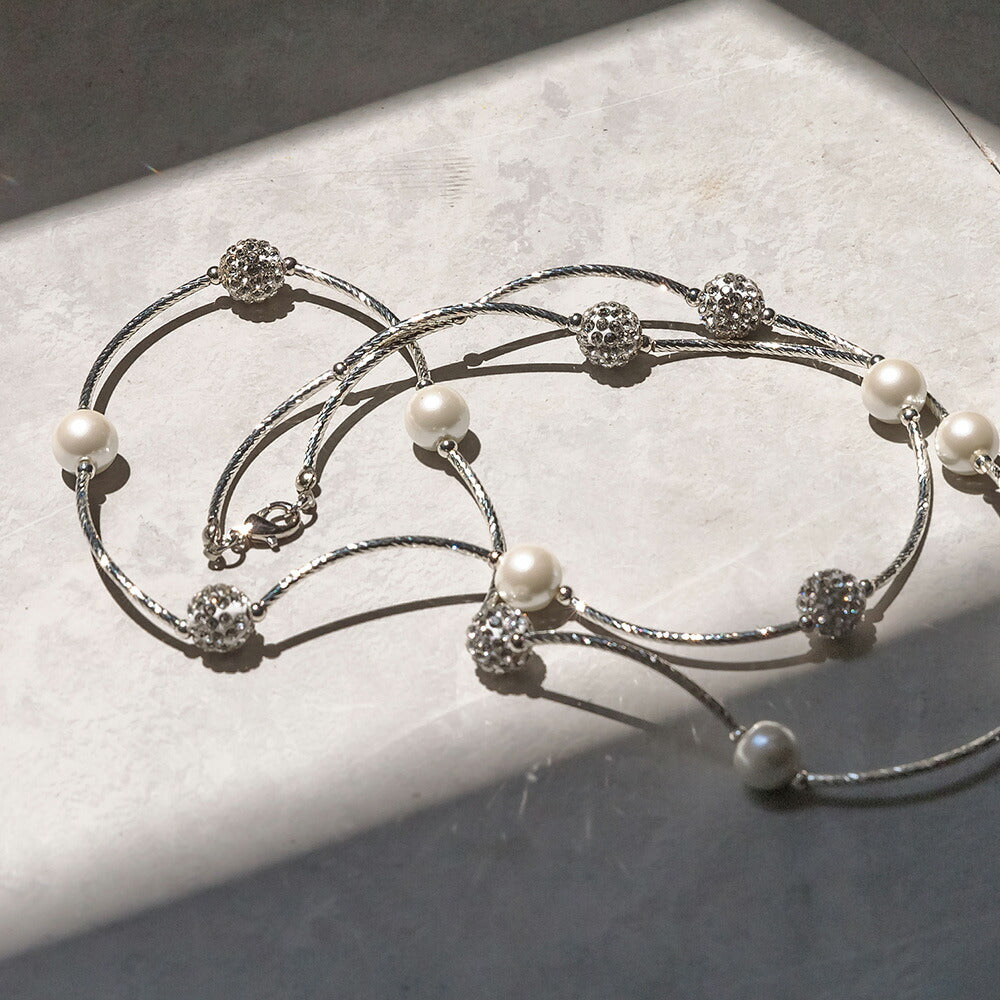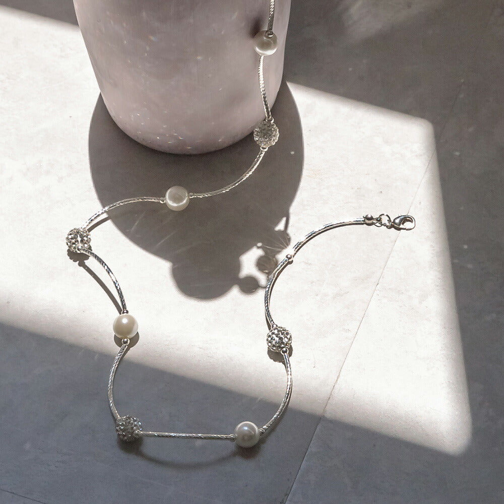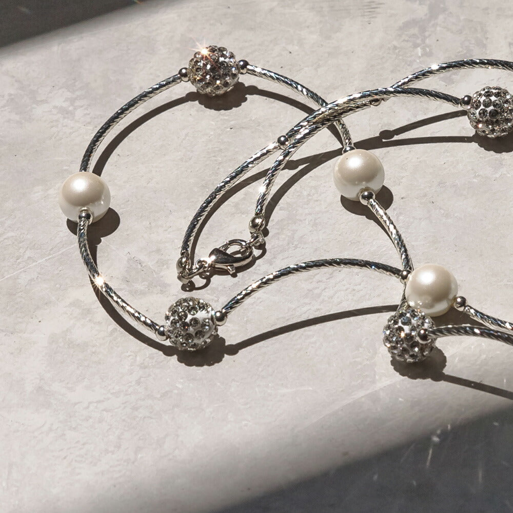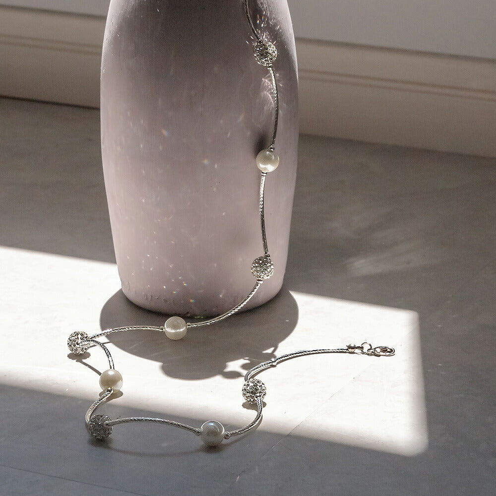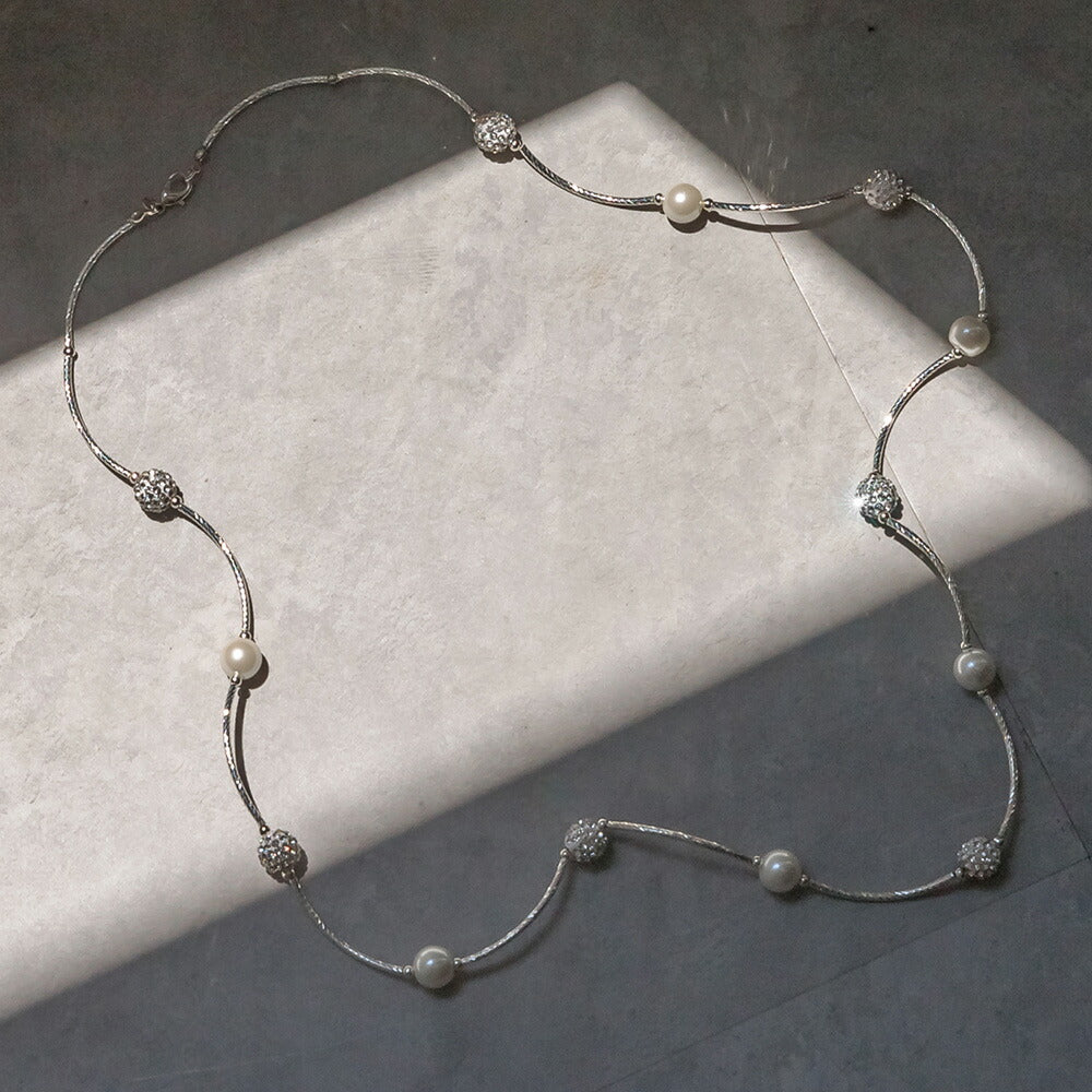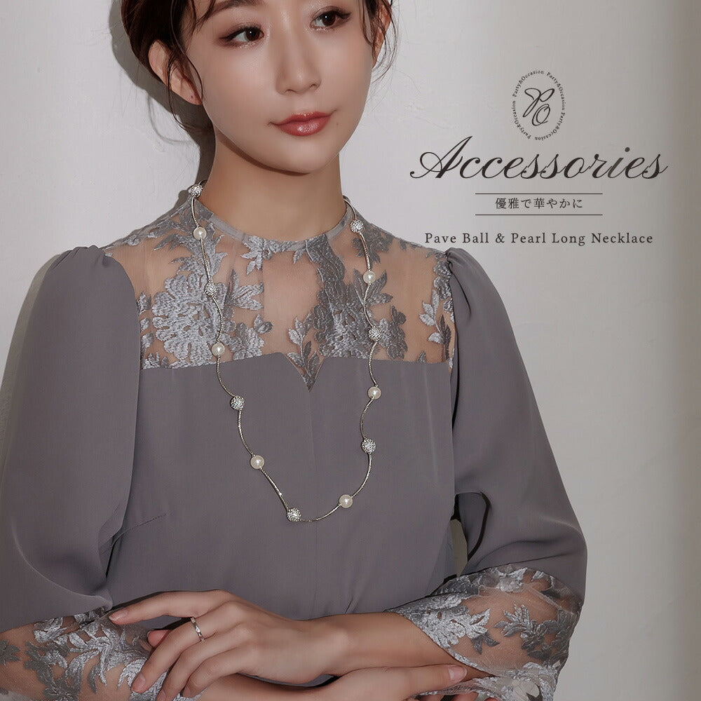 【お問い合わせ】 550118 パヴェボール&パールロングネックレス