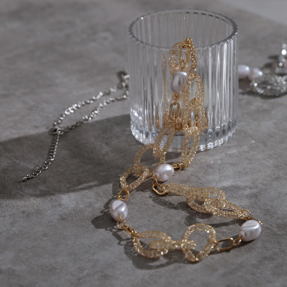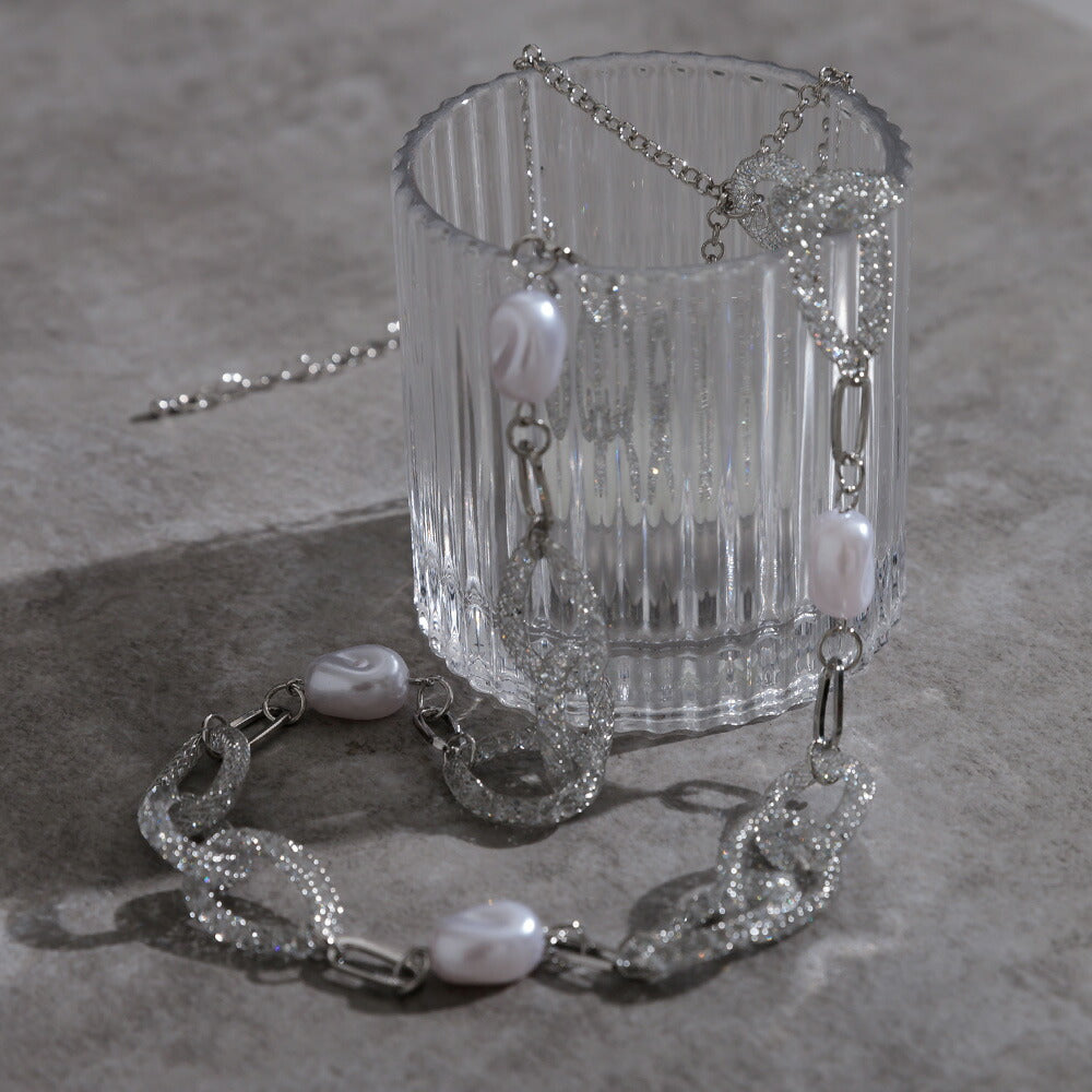 【お問い合わせ】 550119 パール×クリスタルリングロングネックレス