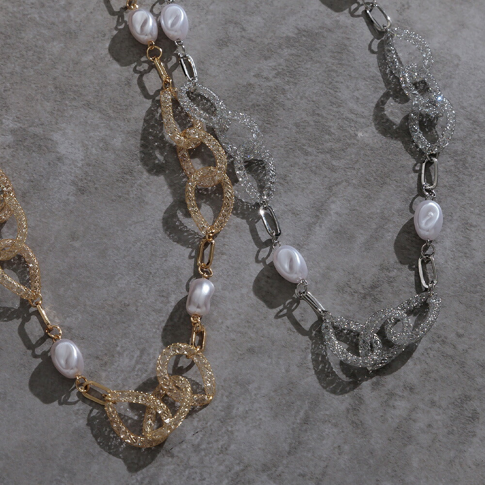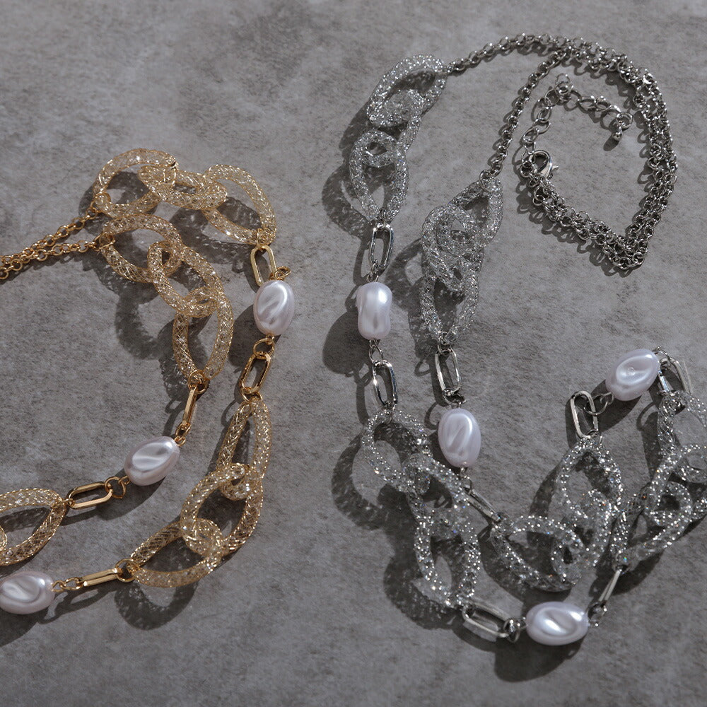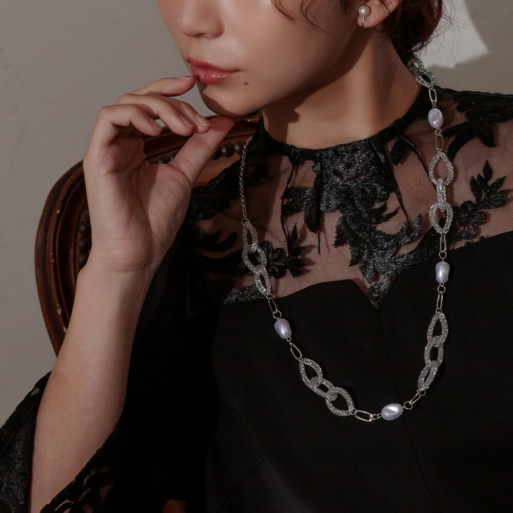 550119 パール×クリスタルリングロングネックレス