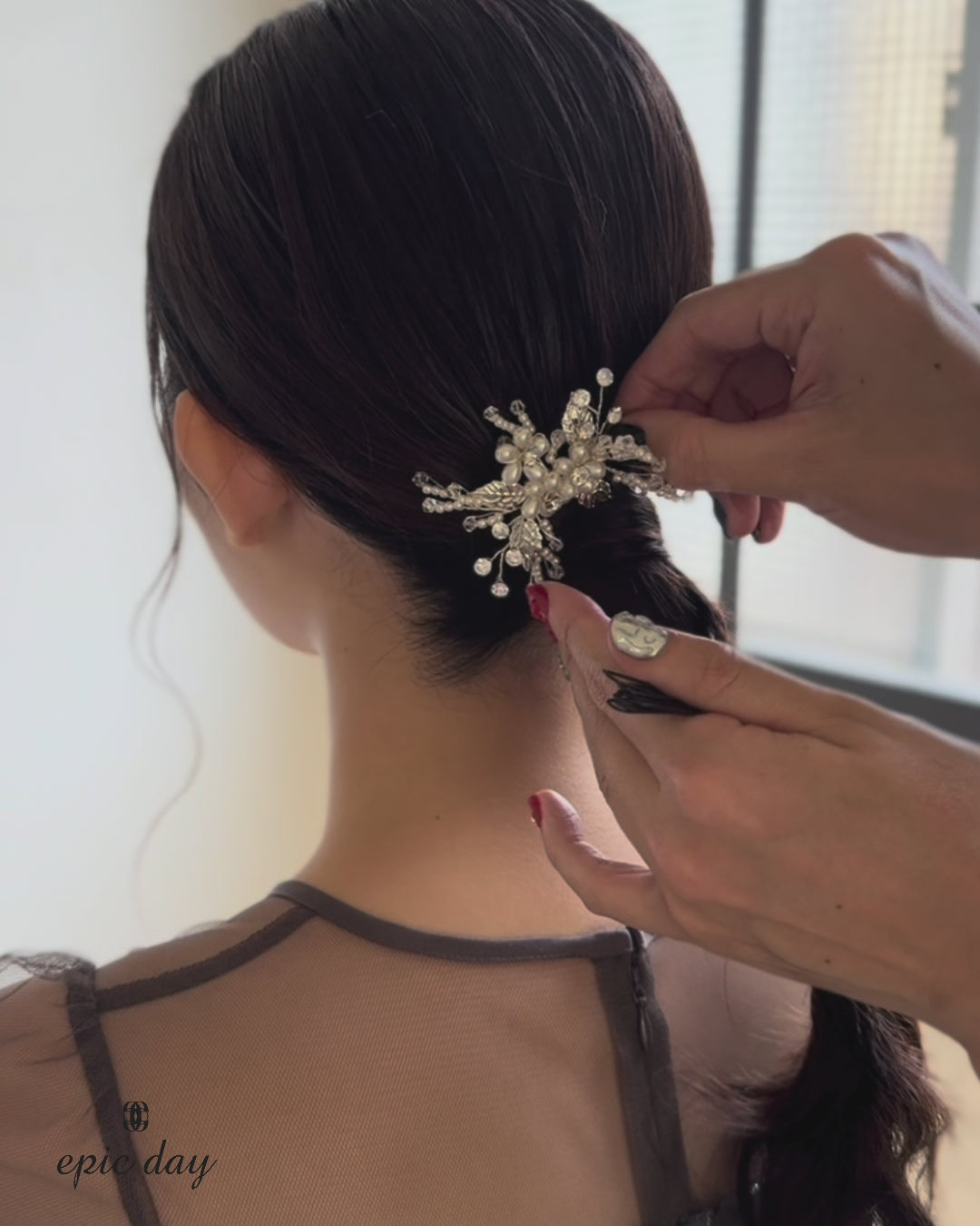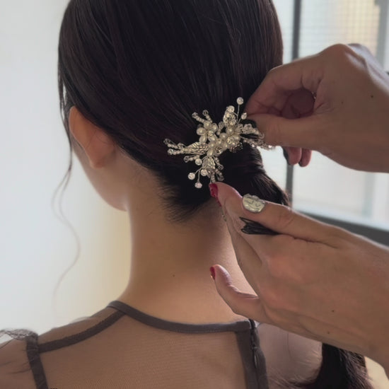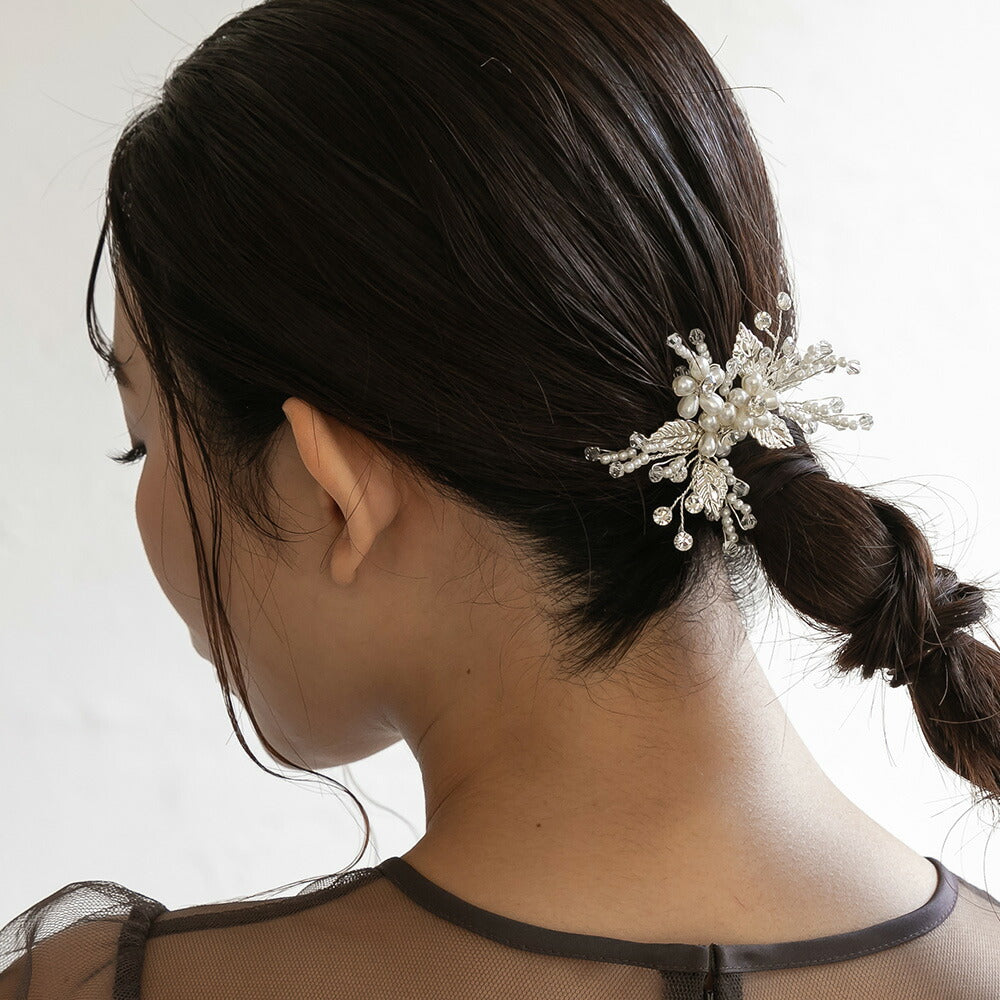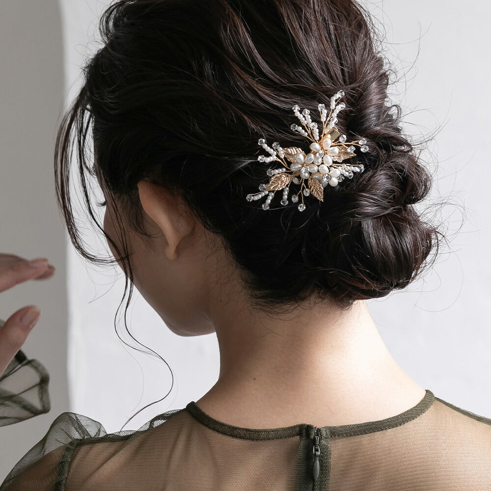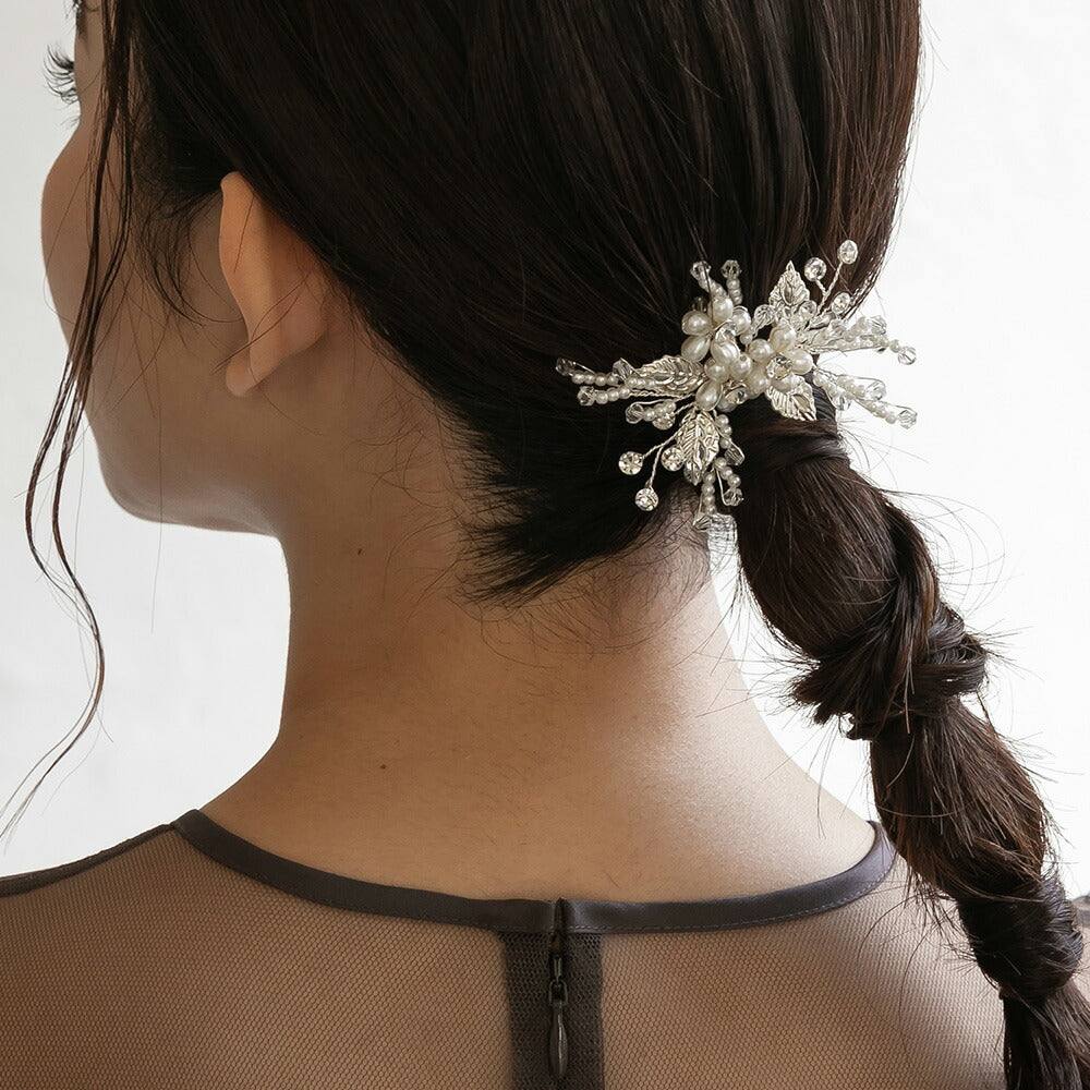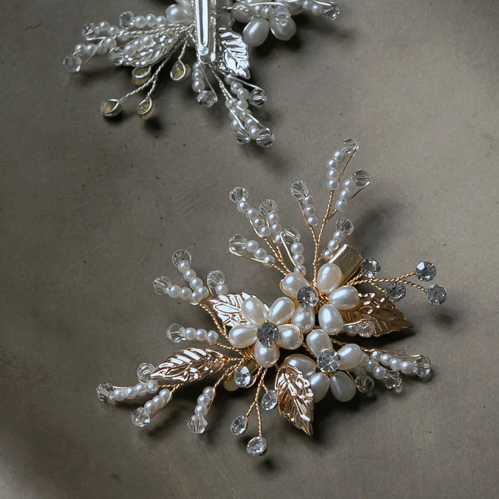 550126 バルーンパール&リーフヘアクリップ