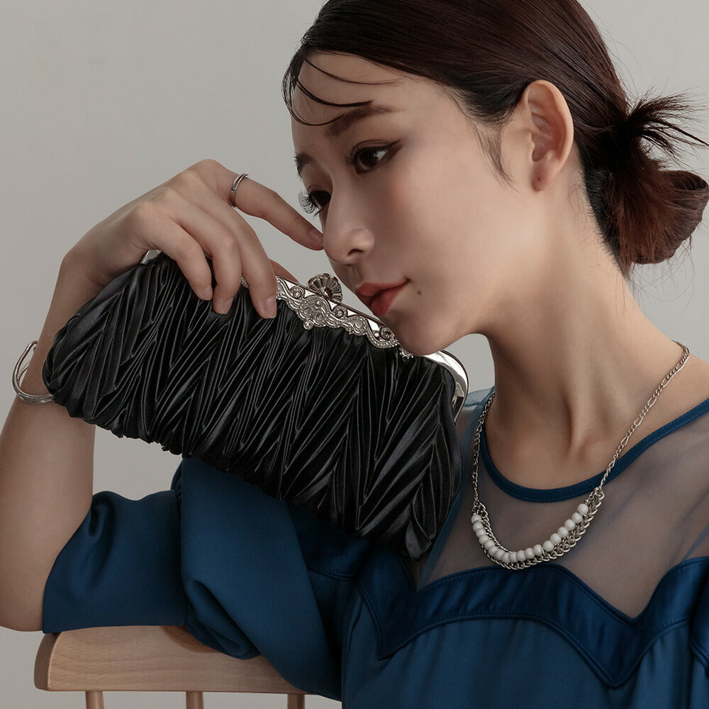 【お問い合わせ】 900030 プリーツサテンクラッチバッグ